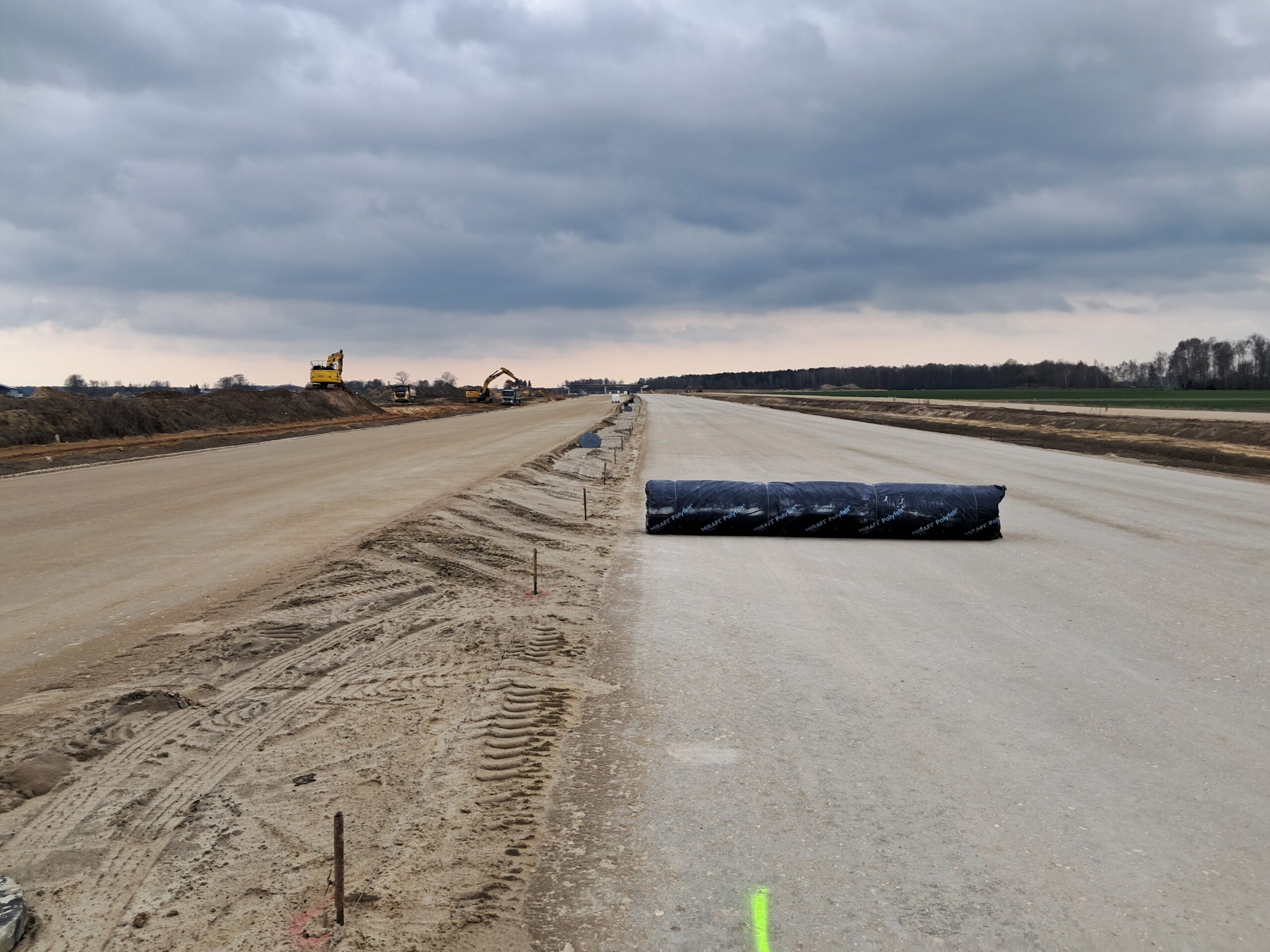 01 kwietnia km 604+400 podbudowa zasadnicza C8_10 rozkładanie geowłókniny