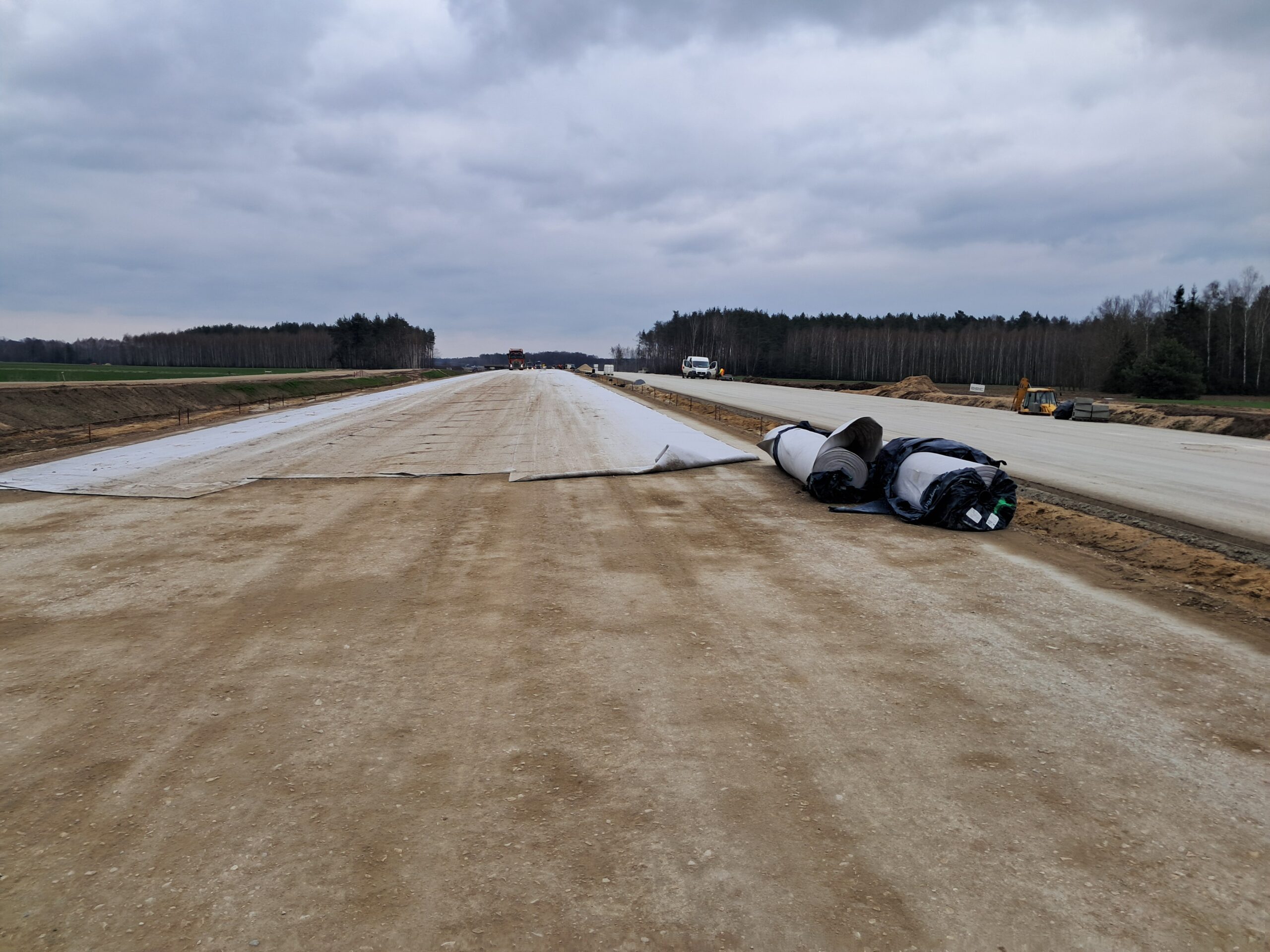 07 kwietnia km 604+400 podbudowa zasadnicza C8_10 rozkładanie geowłókniny