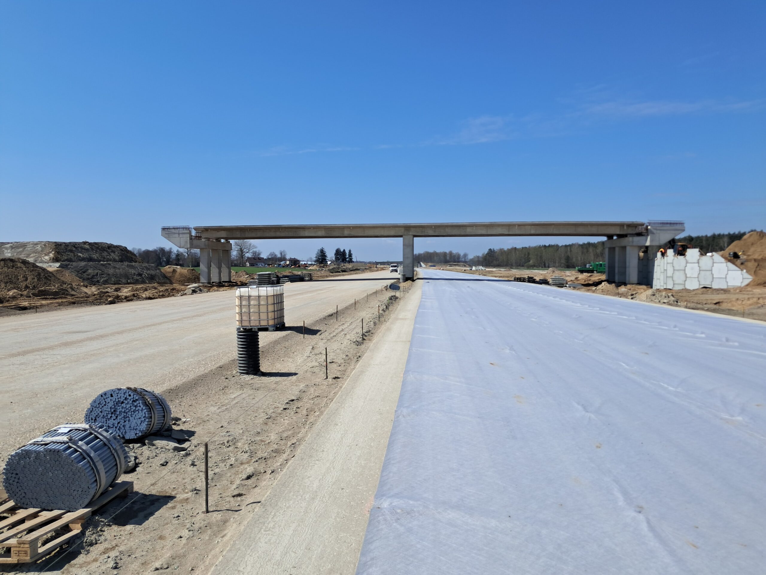 14 kwietnia km 603+600 budowa WD_70 podbudowa zasadnicza C8_10 ułożono geowłókninę