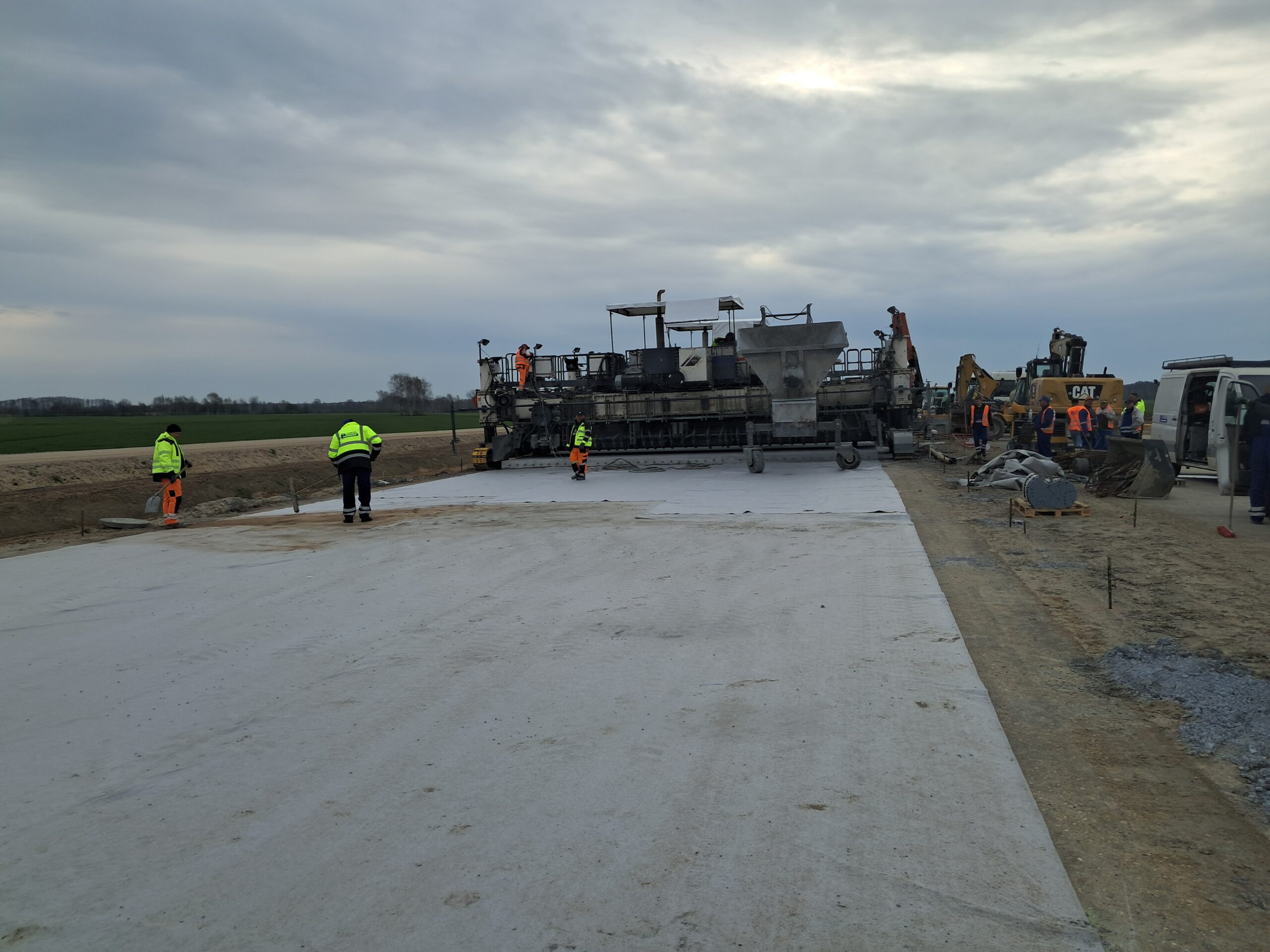 14 kwietnia km 605+300’ podbudowa zasadnicza C8_10 i budowa nawierzchni betonowej C35_45
