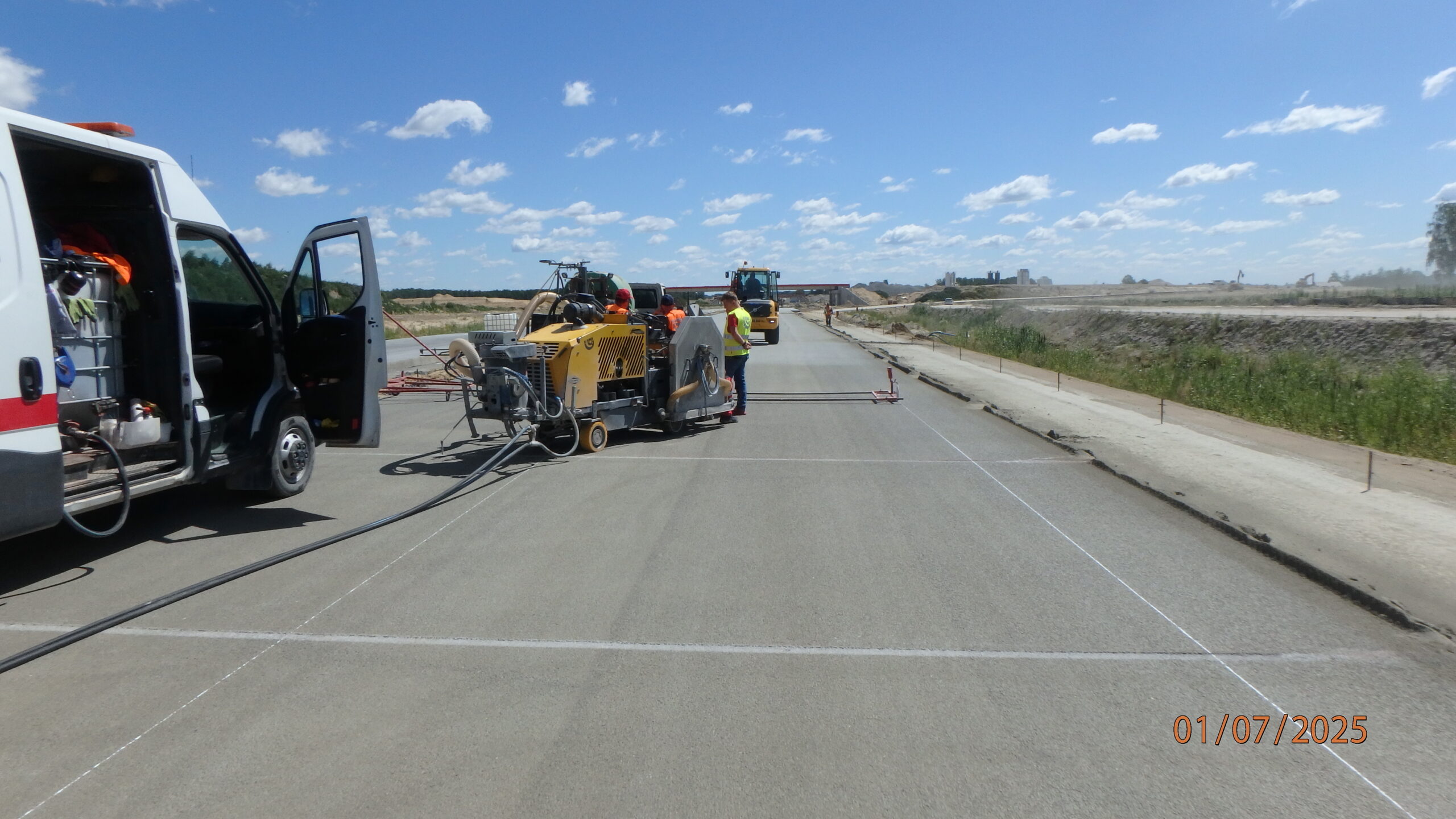 01.07.2025 595+500 jezdnia prawa nacinanie szczelin dylatacyjnych