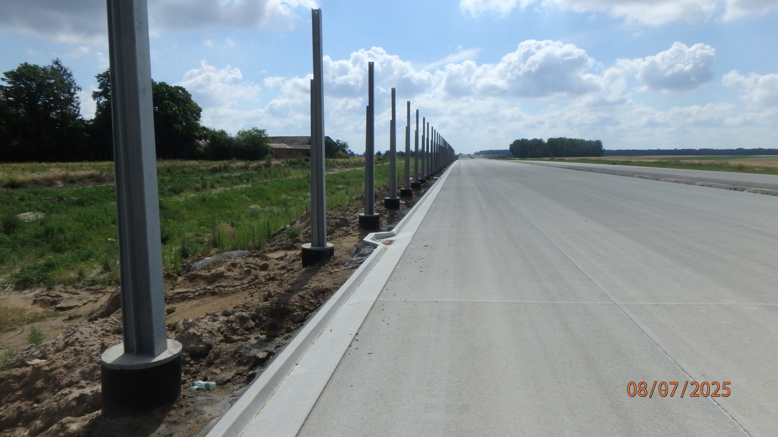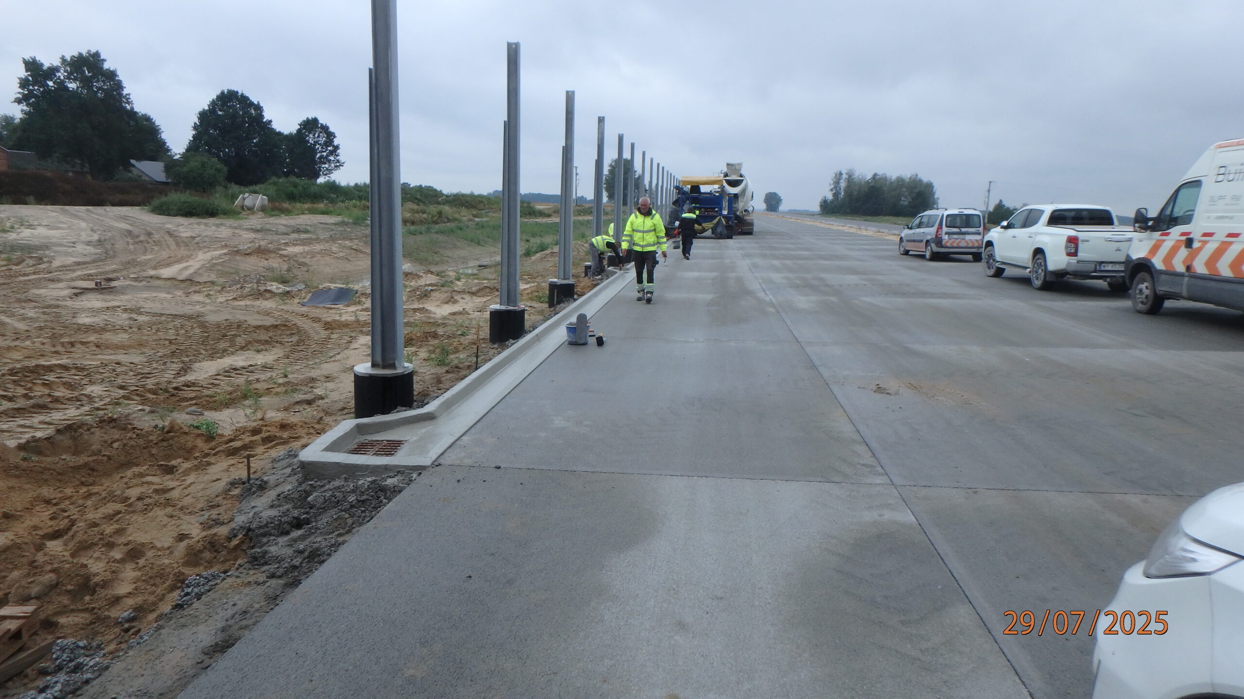 08.07.2025 583+100 str. lewa ułożony ściek i wykonane słupy gotowe do montażu paneli ekranów dziwiękochłonnych