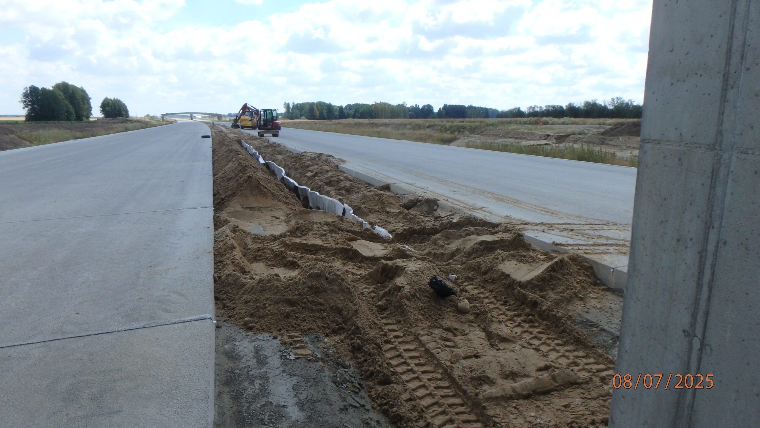 08.07.2025 589+400 układanie drenażu w pasie rozdziału