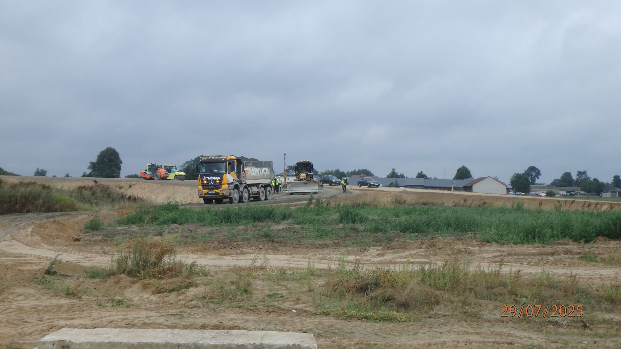 29.07.2025 596+400 układanie nawierzchni pasa włączenia na L-04