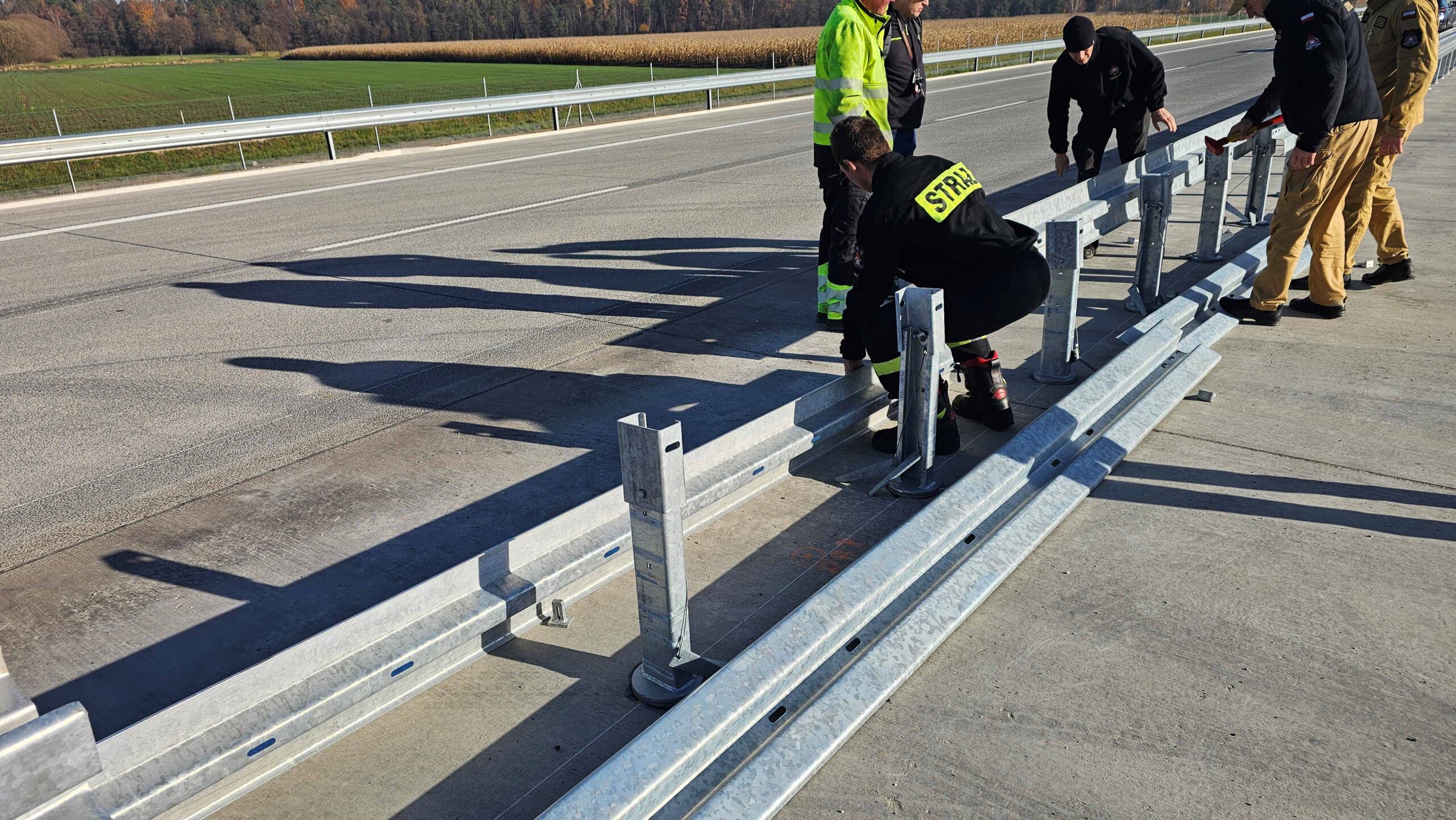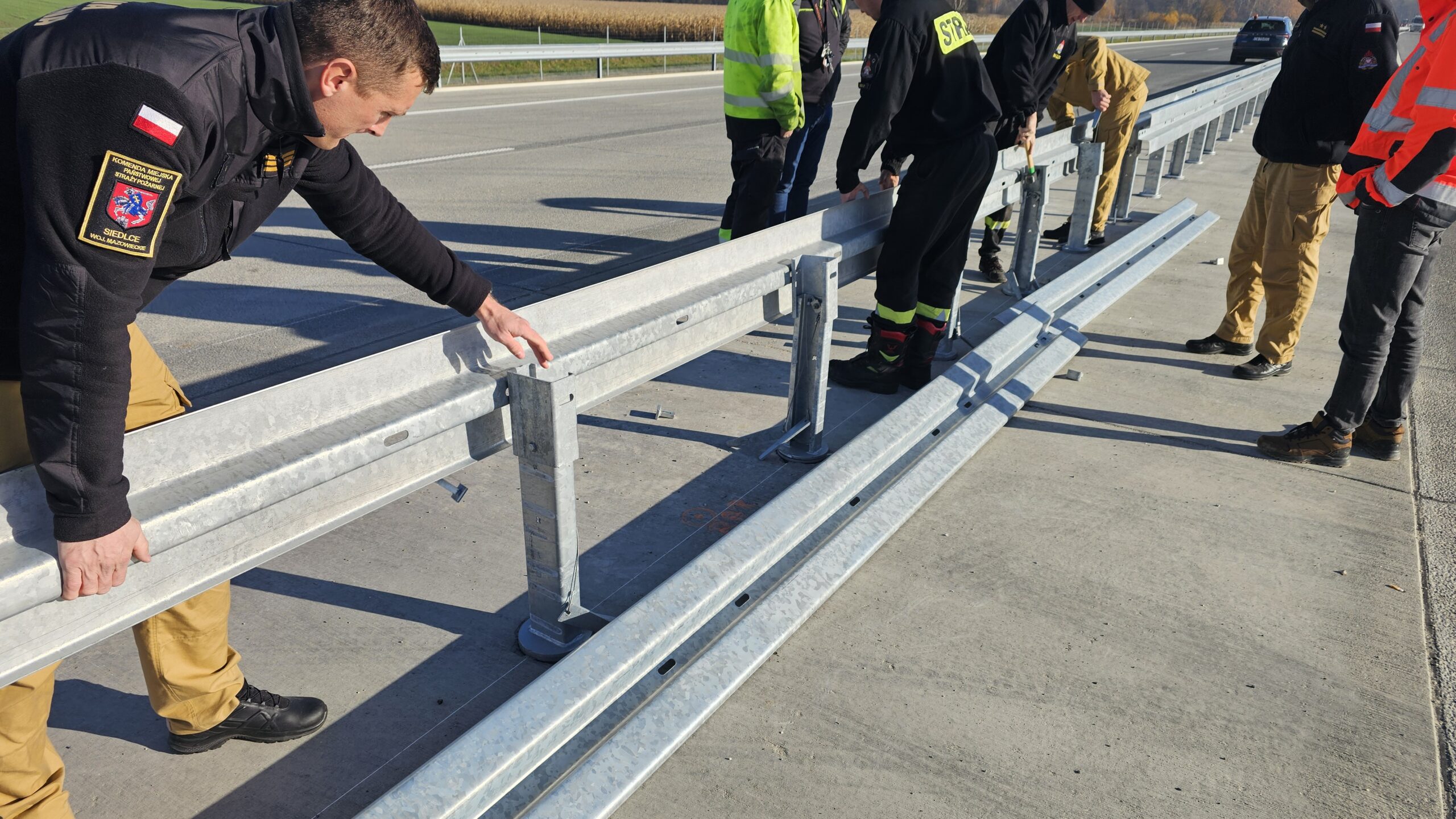 05.11.2025 Ćwiczenia strazackie przy demontażu barier rozbieralnych km. 579+400