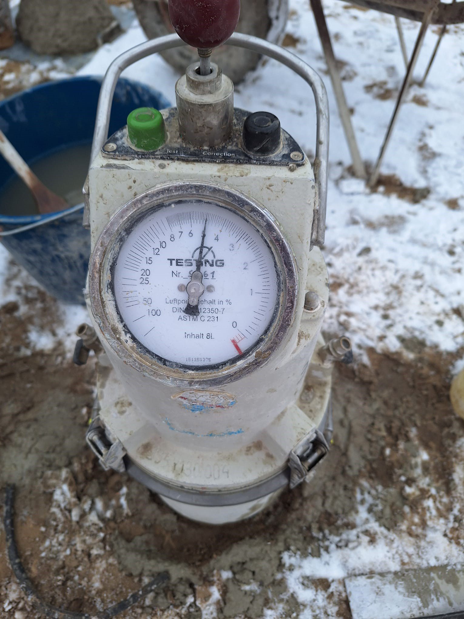 14.02.25 obiekt WA41 kontrola zawartości mieszanki beton poprzecznicy P2 i P3 etap II