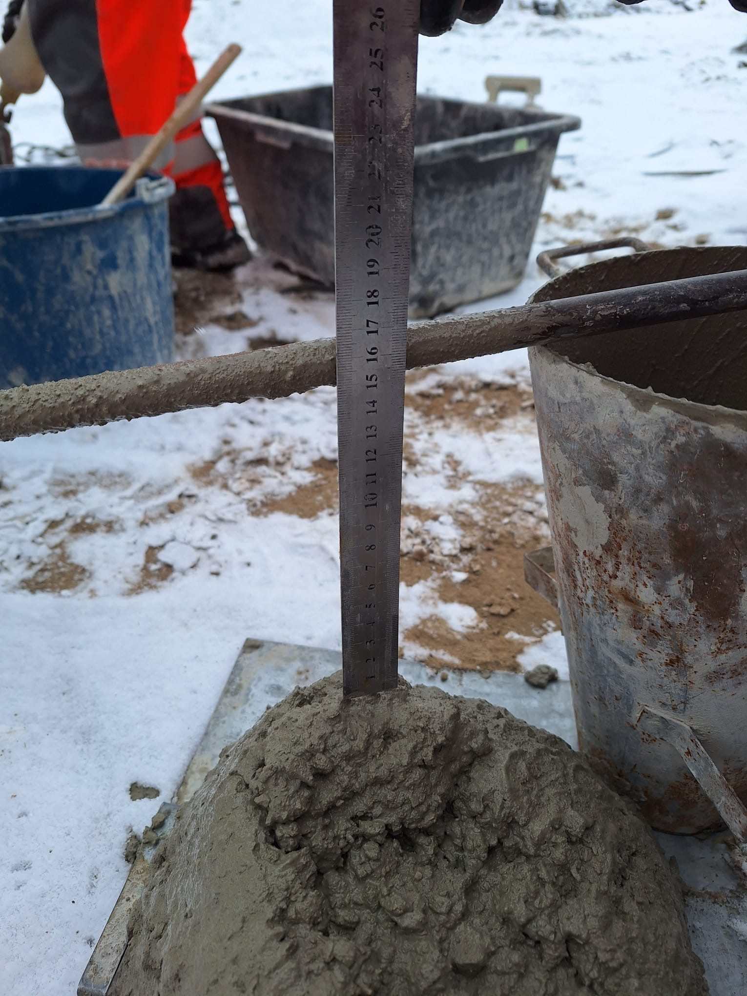 14.02.25 obiekt WA41 pomiar konsystencji betonu poprzecznicy P2 i P3 etap II