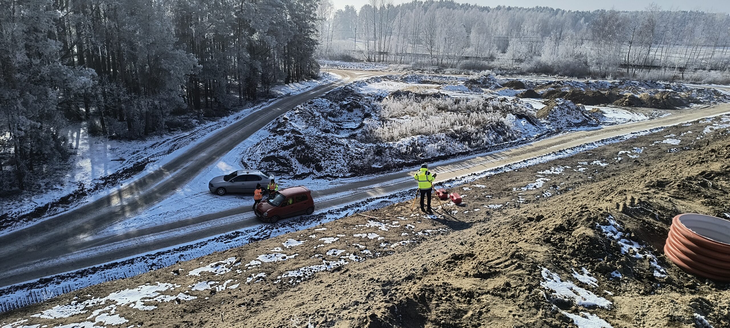 20.02.2025 pomiary geodezyjne przy PZDd 41A 567+499,27