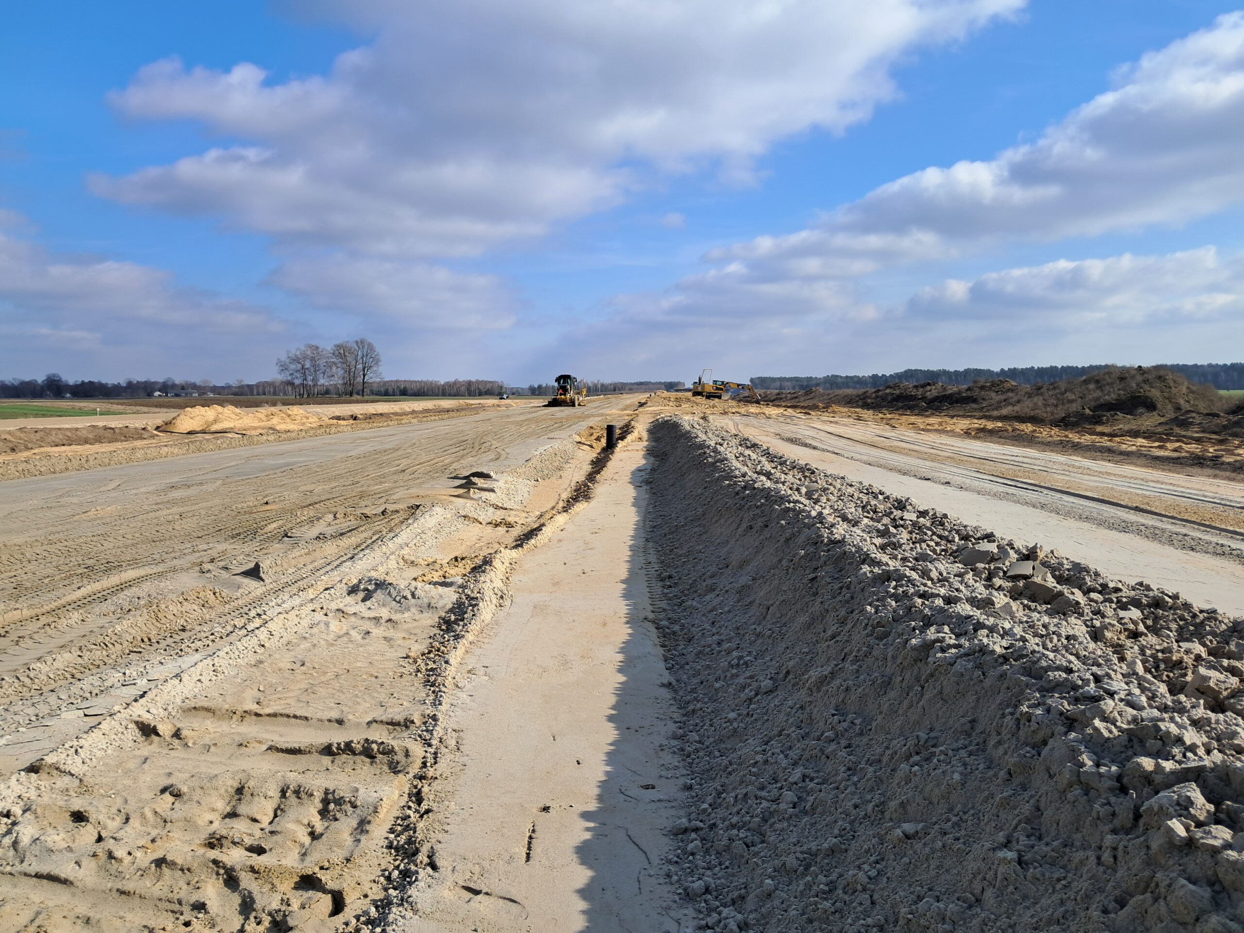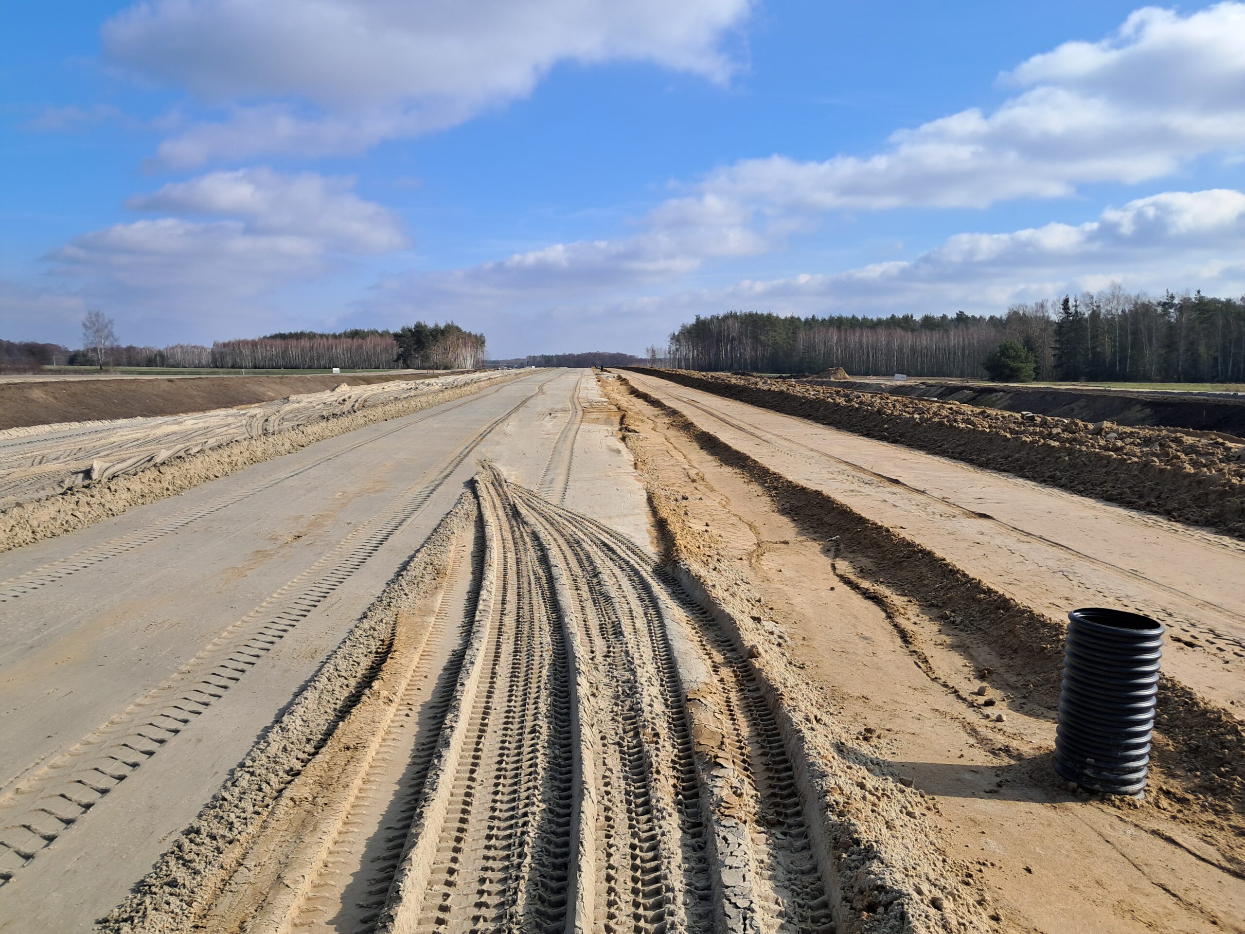 11 marca km 605+300’ podbudowa pomocnicza C5_6 i zasadnicza C8_10 drenaż w pasie dzielącym