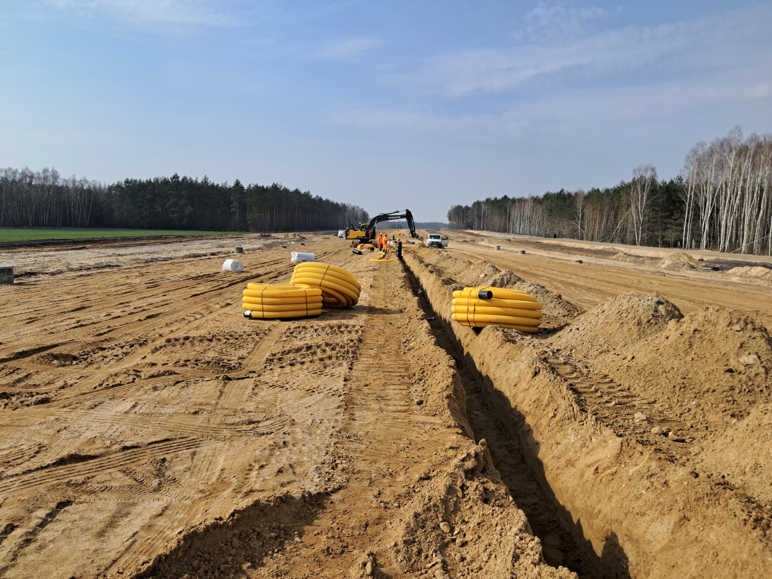 25 marca km 608+300 budowa nasypu budowa drenażu w pasie rozdziału