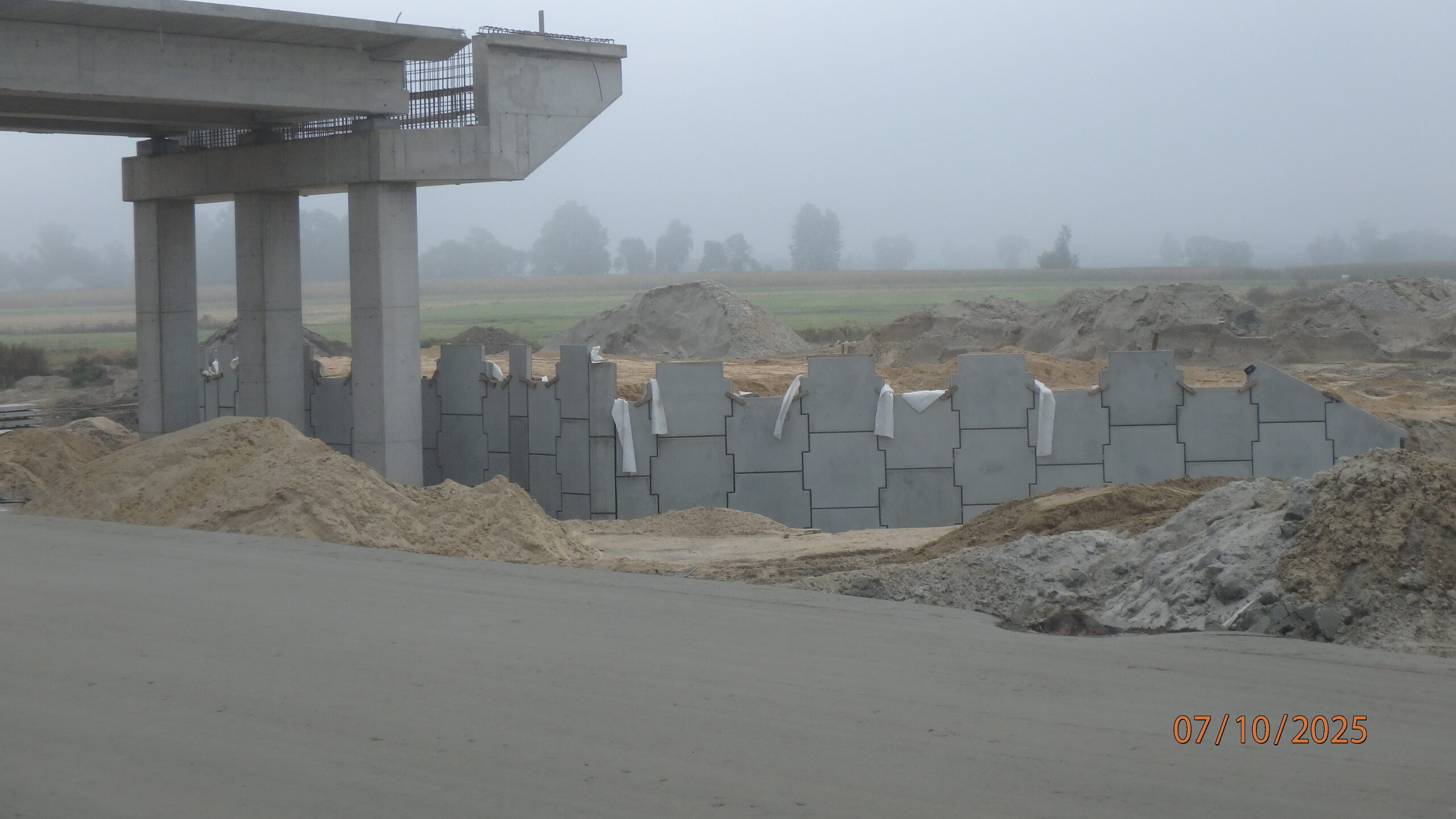 07.10.2025 581+510 WD-52 montaż i zasypka ściany oporowej str. południowa