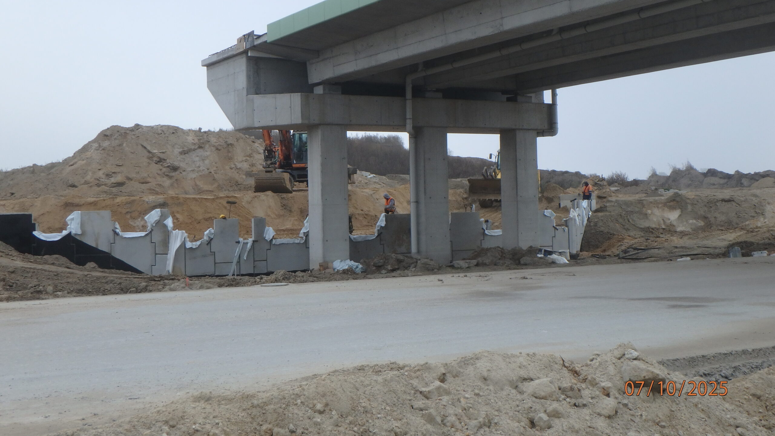 07.10.2025 582+500 WD-53 montaż i zasypka ściany oporowej str. północna