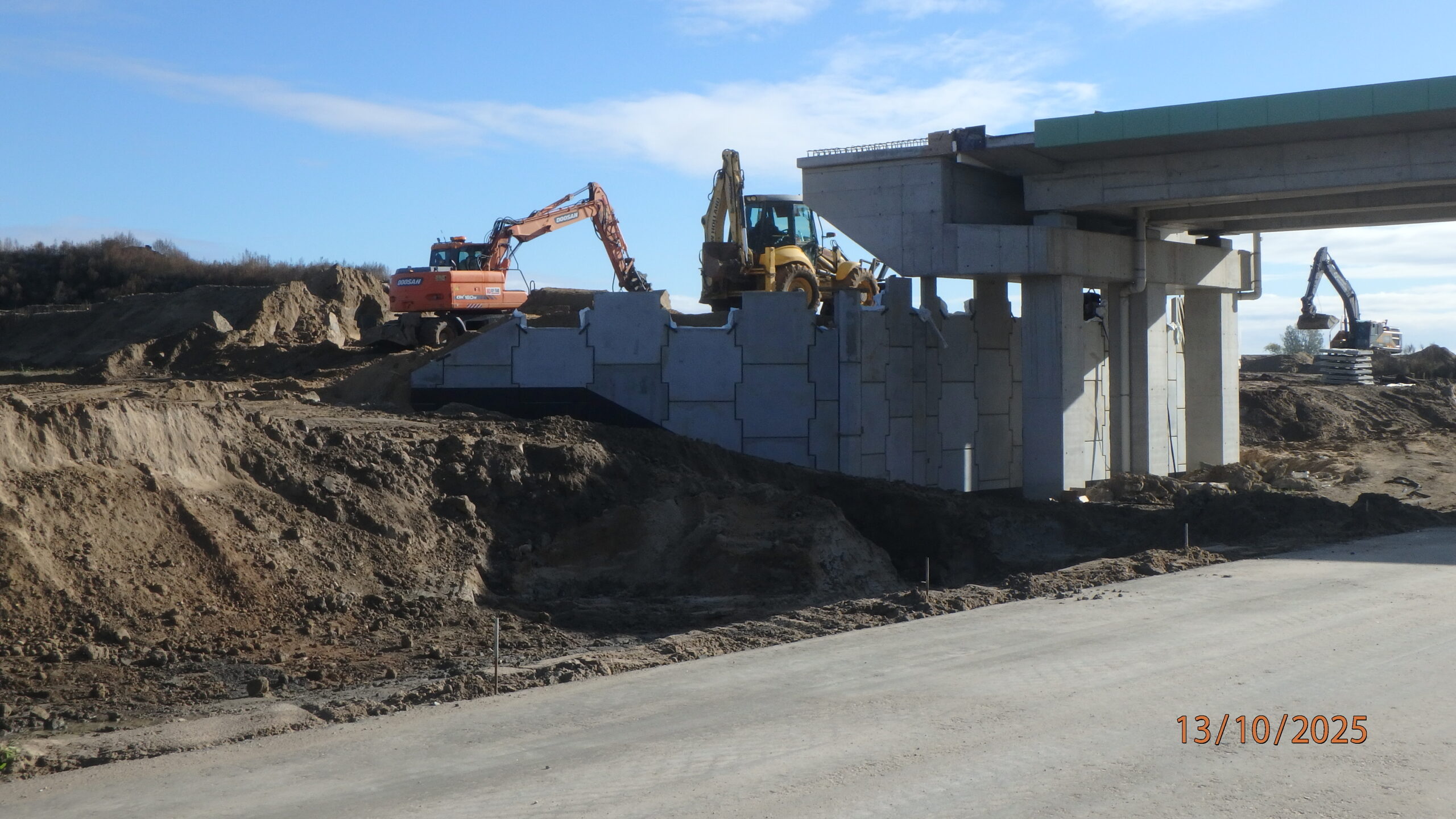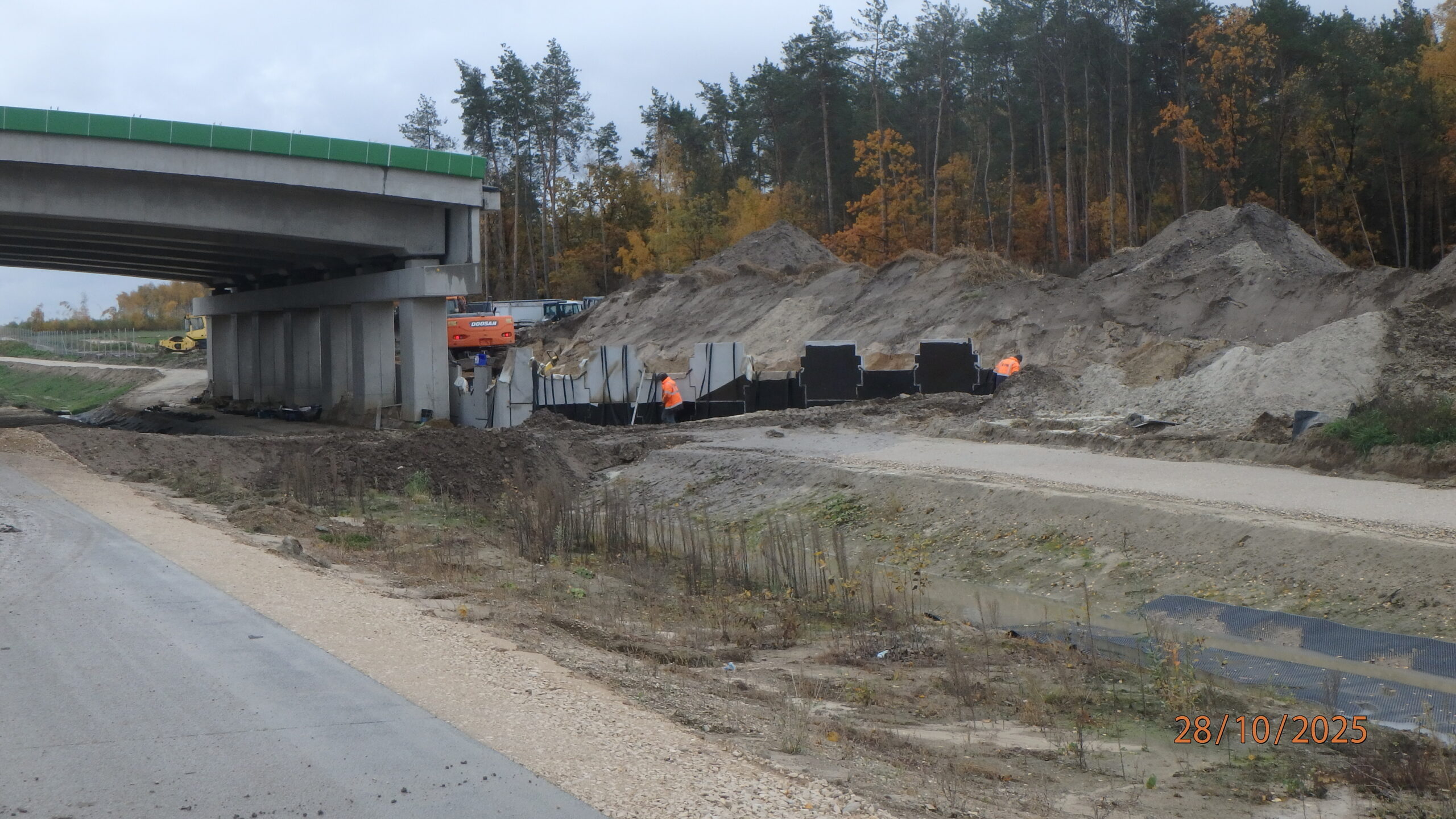 13.10.2025 597+300 WD-04 montaż i zasypka ściany oporowej