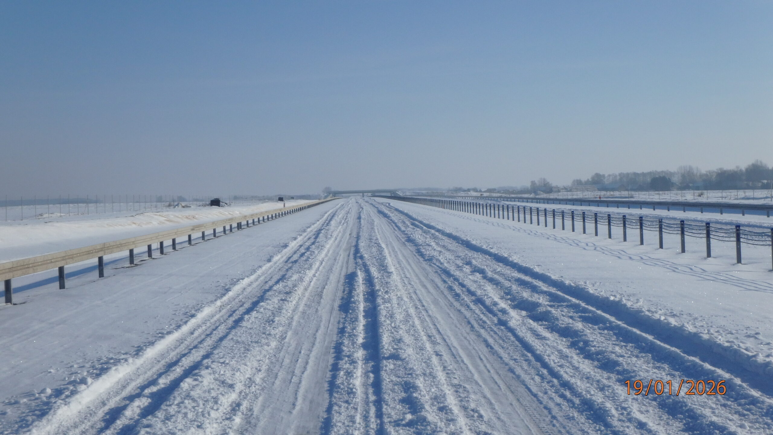 07.01.2026 582+000 widok na A2 ( temp. -7 stop. C )