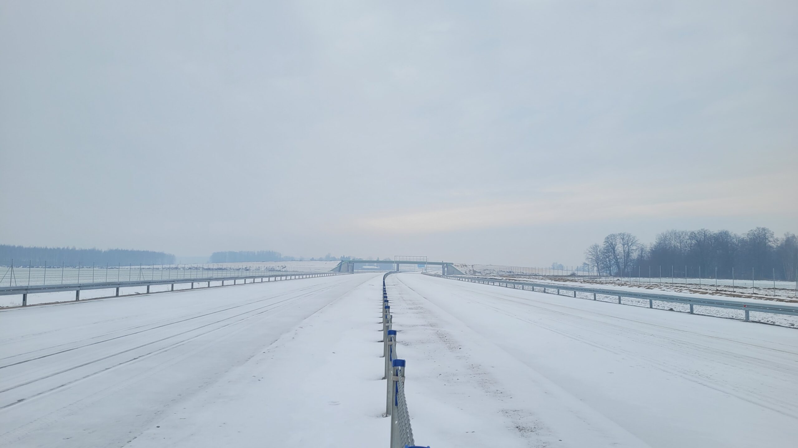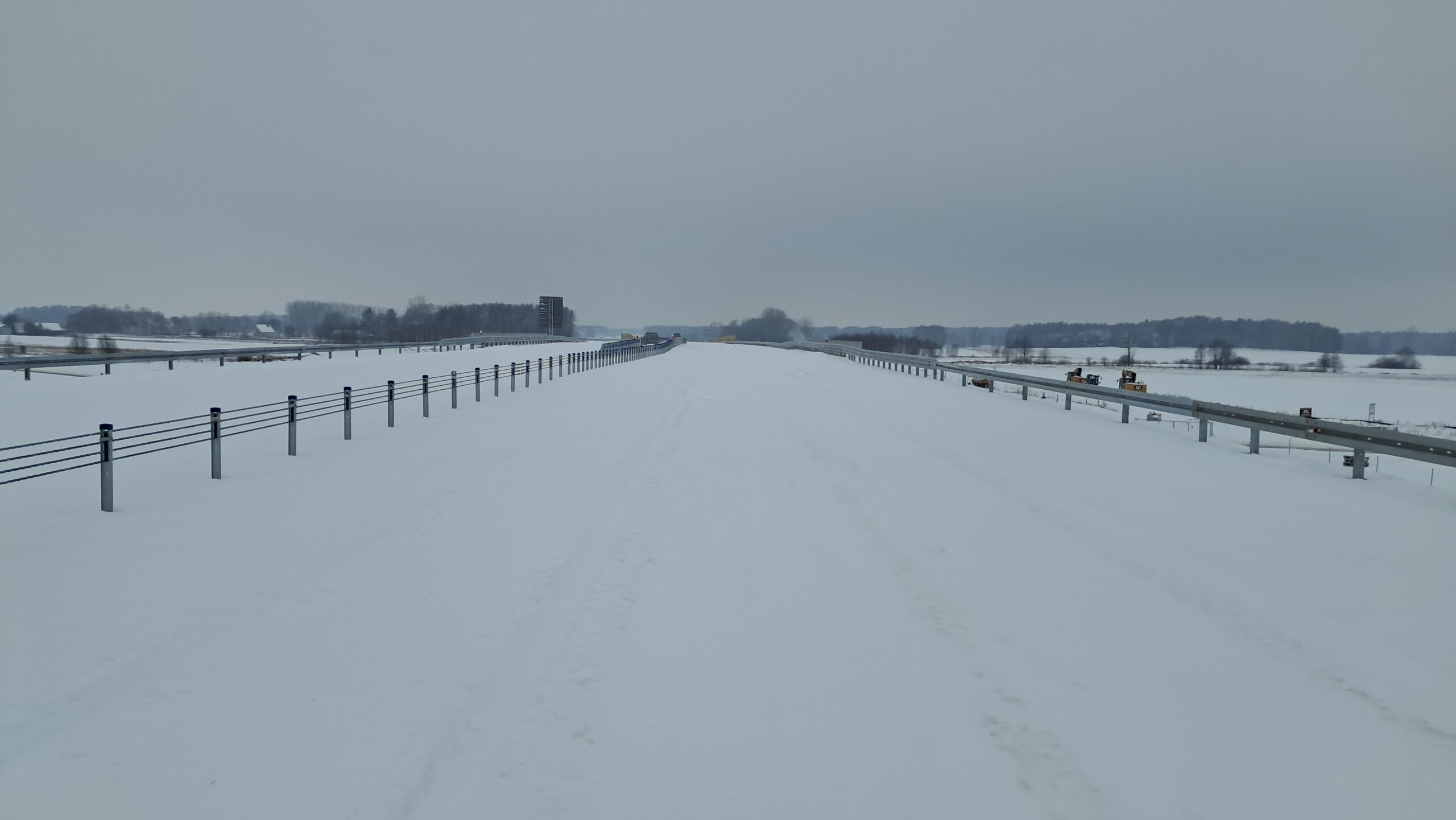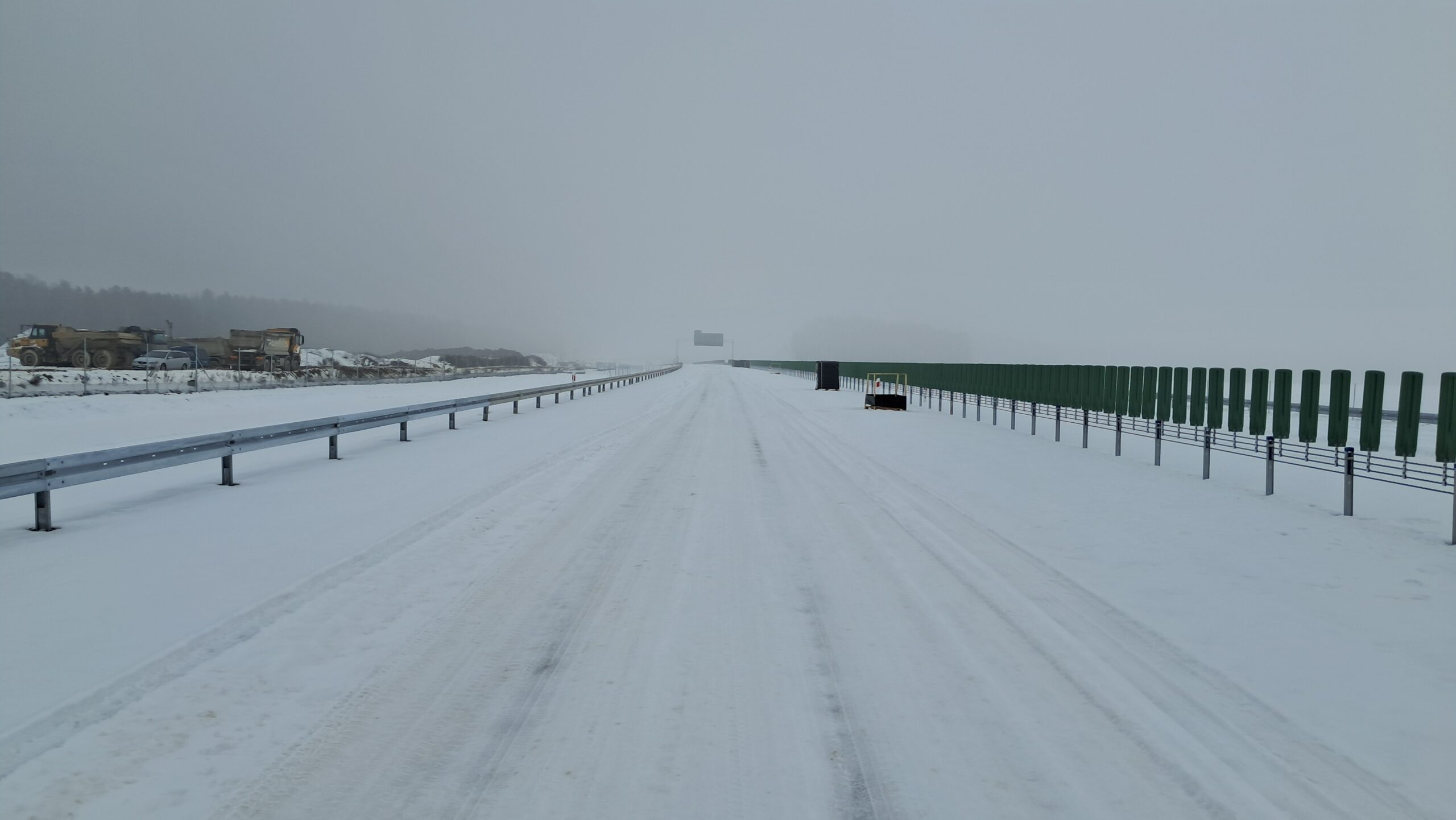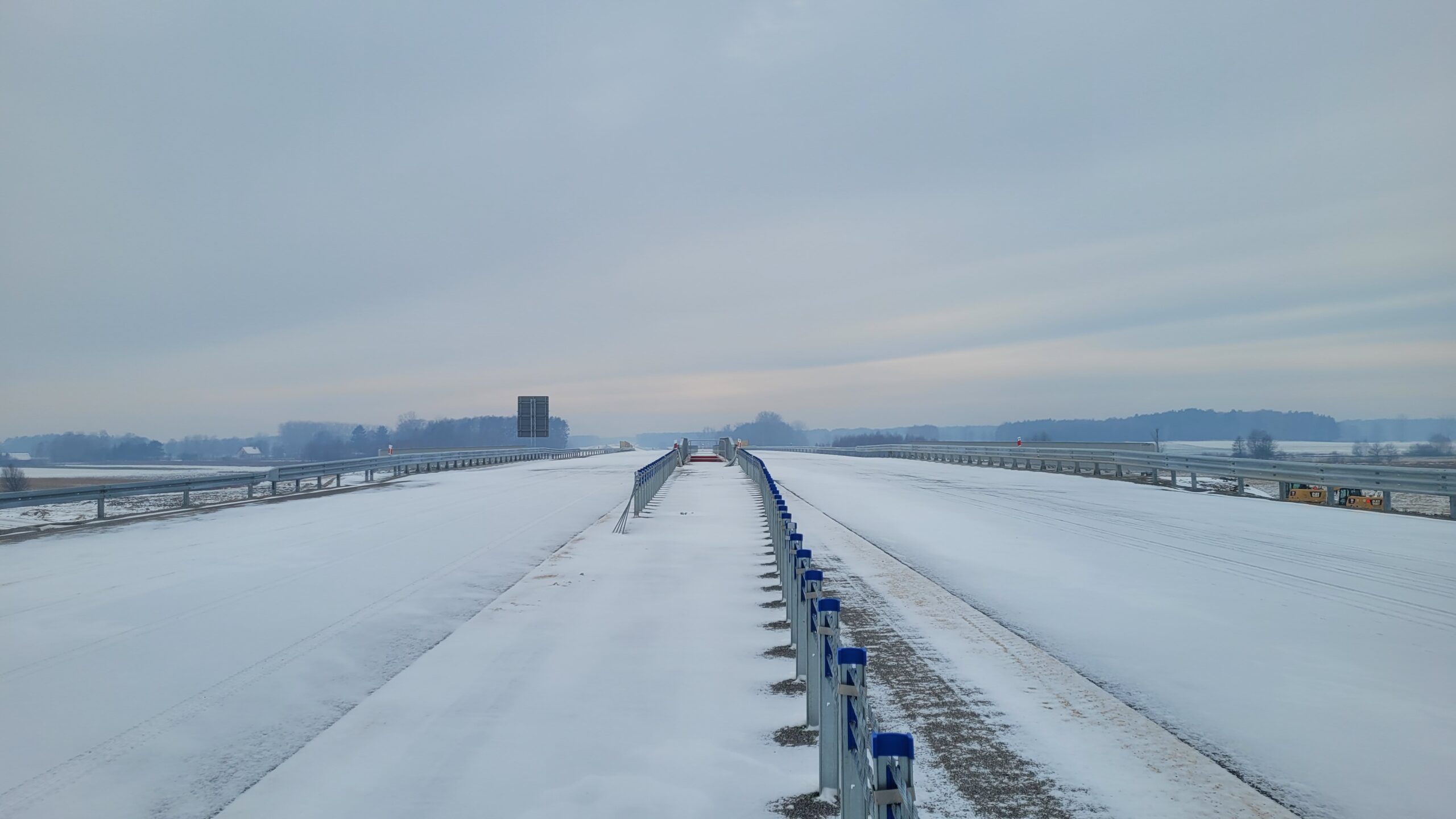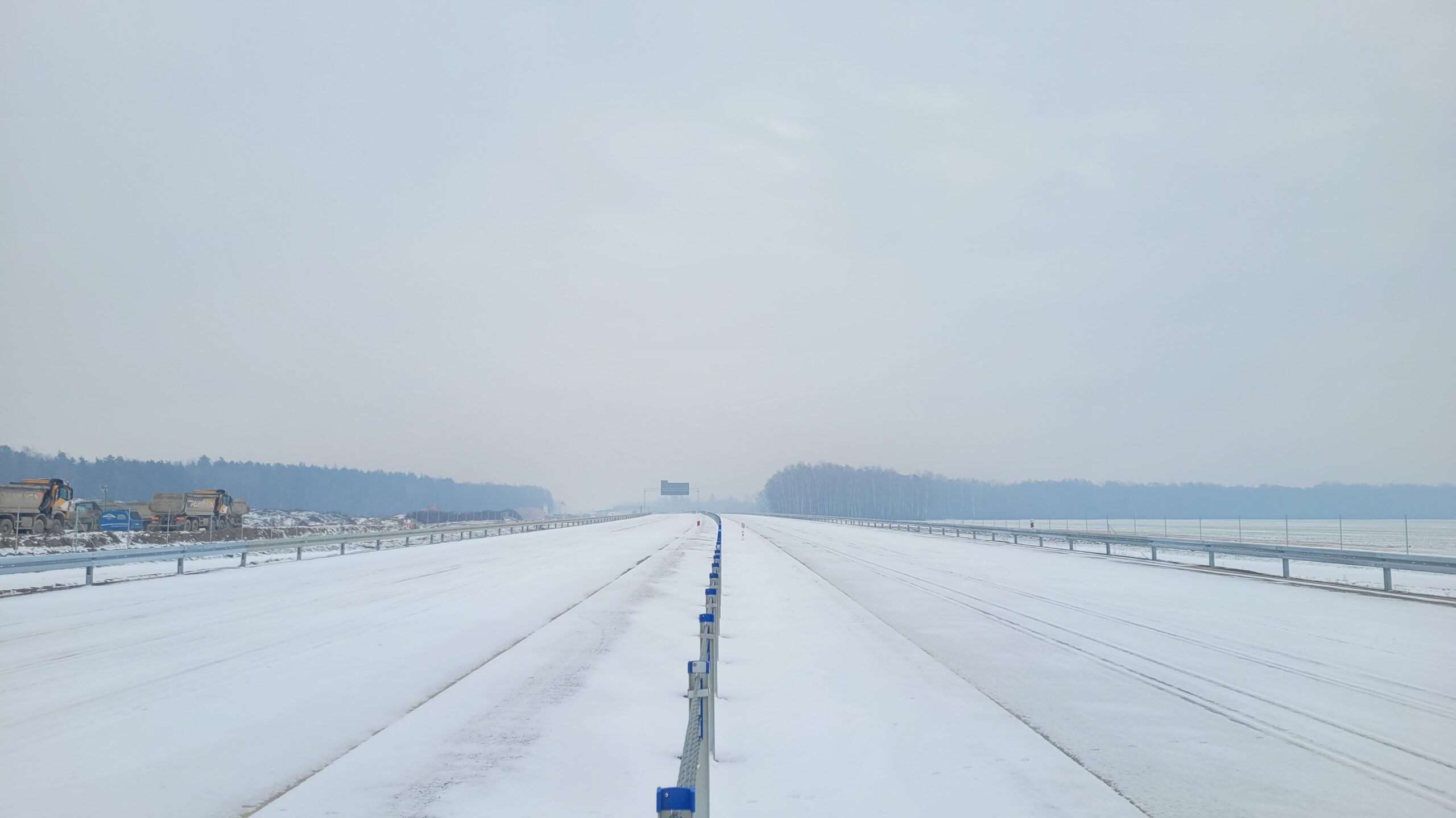 - 07 stycznia km 610+700’ warstwa ścieralna SMA11 budowa poboczy i pasa rozdziału widok w kierunku odcinka IX