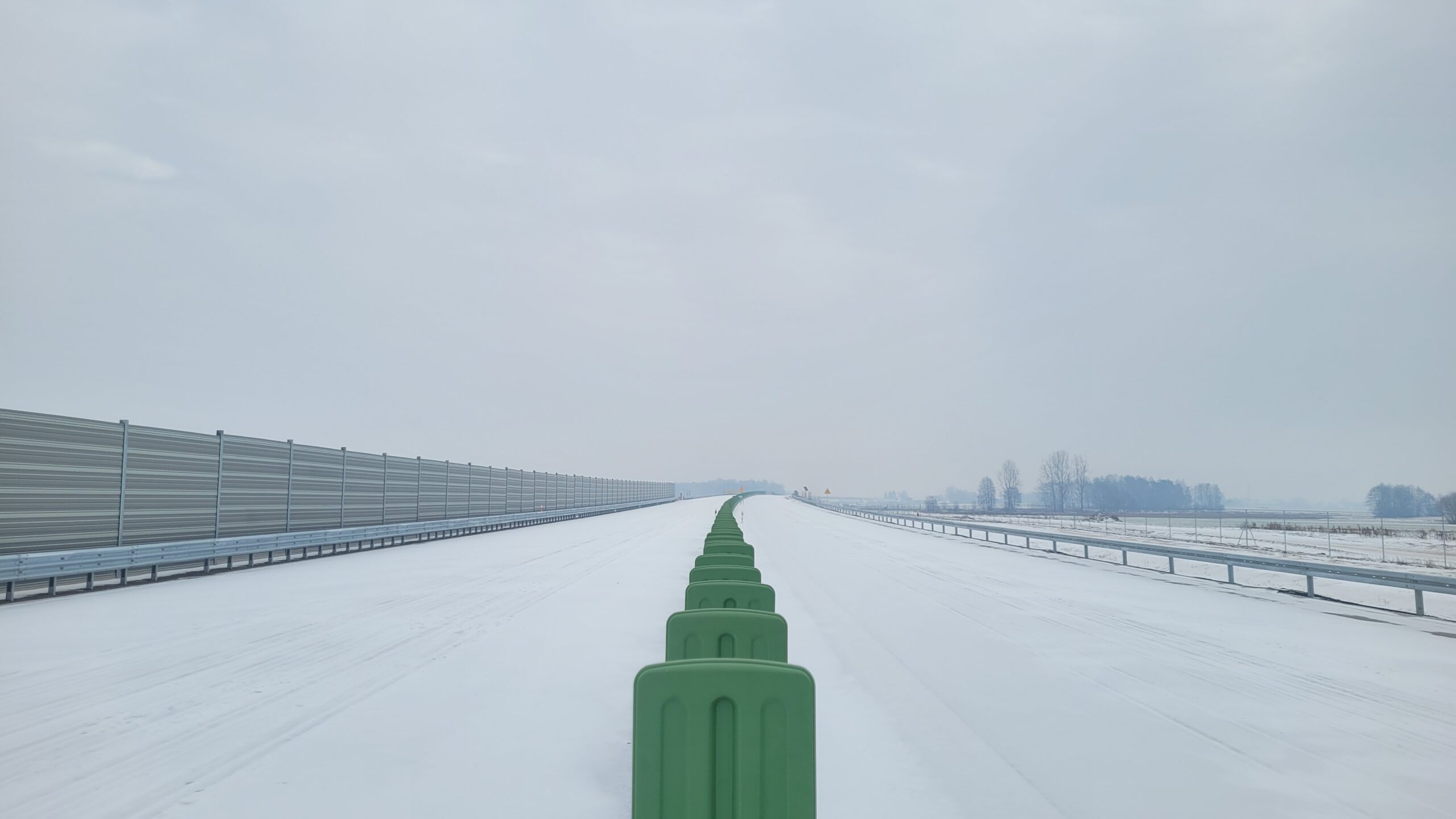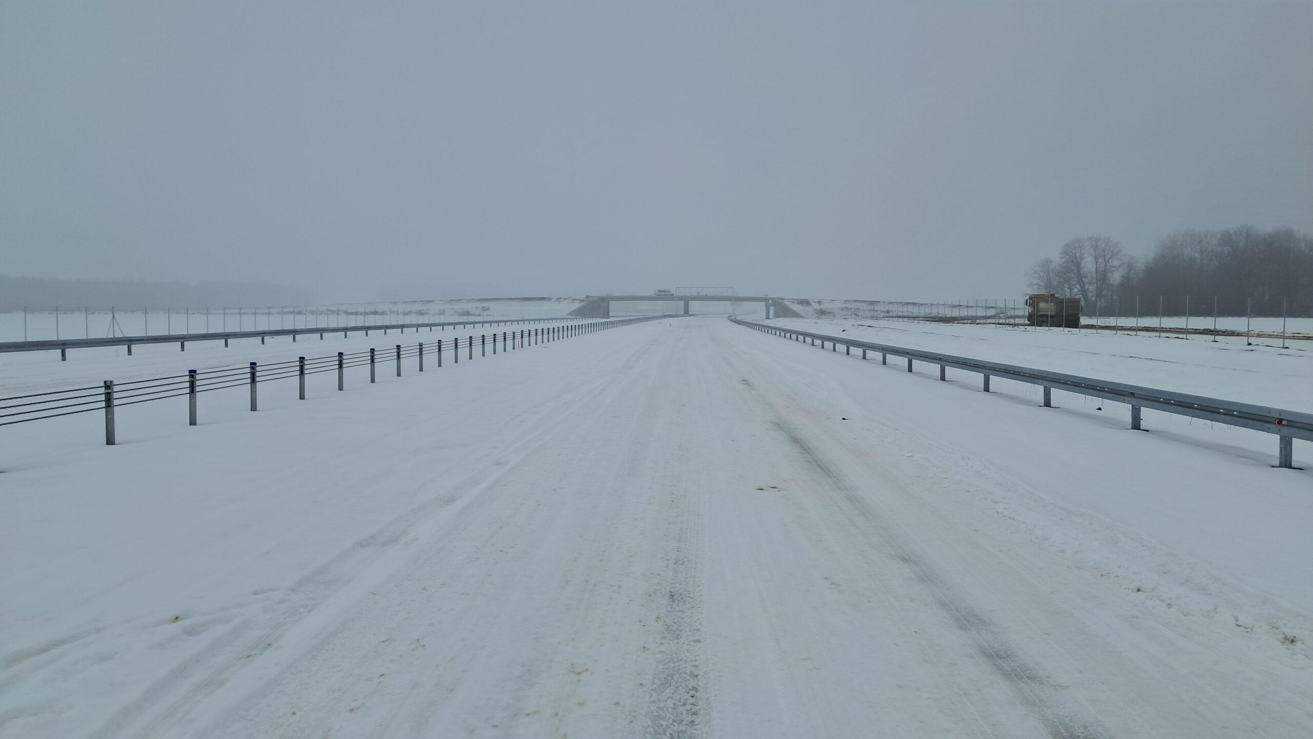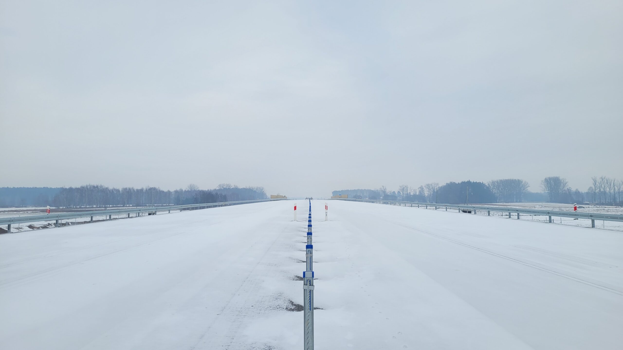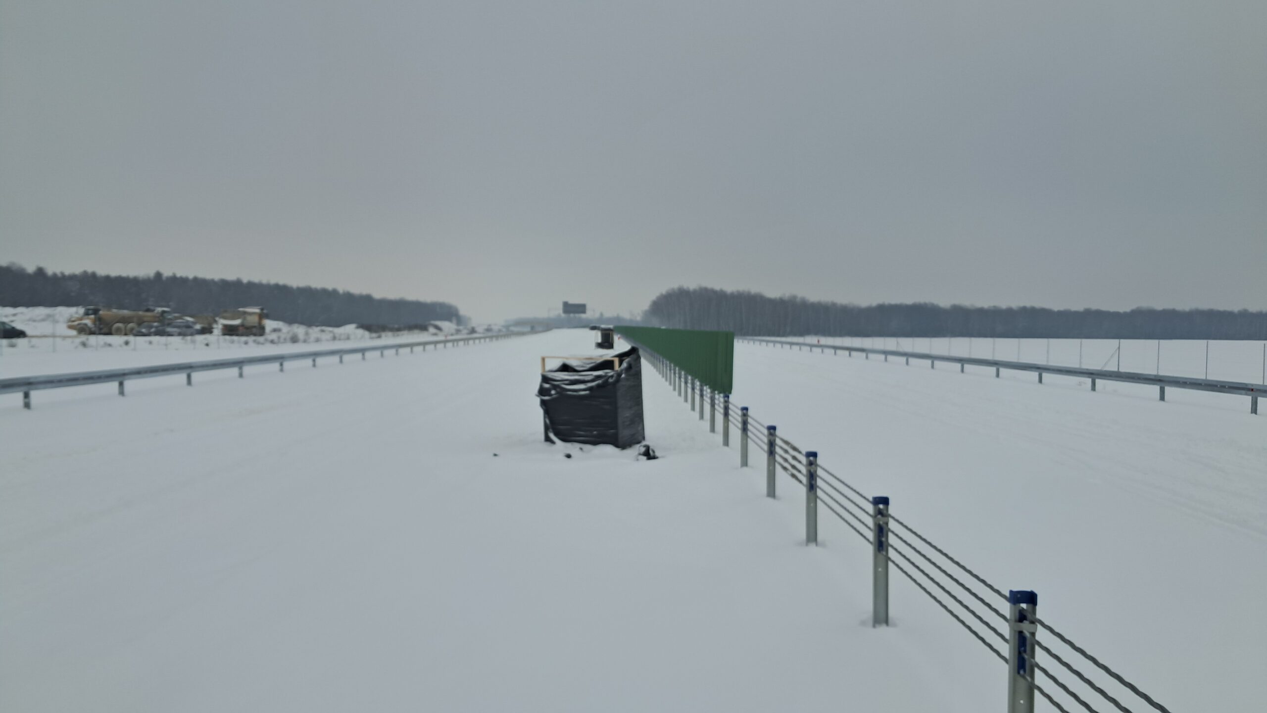 - 07 stycznia km 610+700’ warstwa ścieralna SMA11 budowa poboczy i pasa rozdziału widok w kierunku odcinka IX
