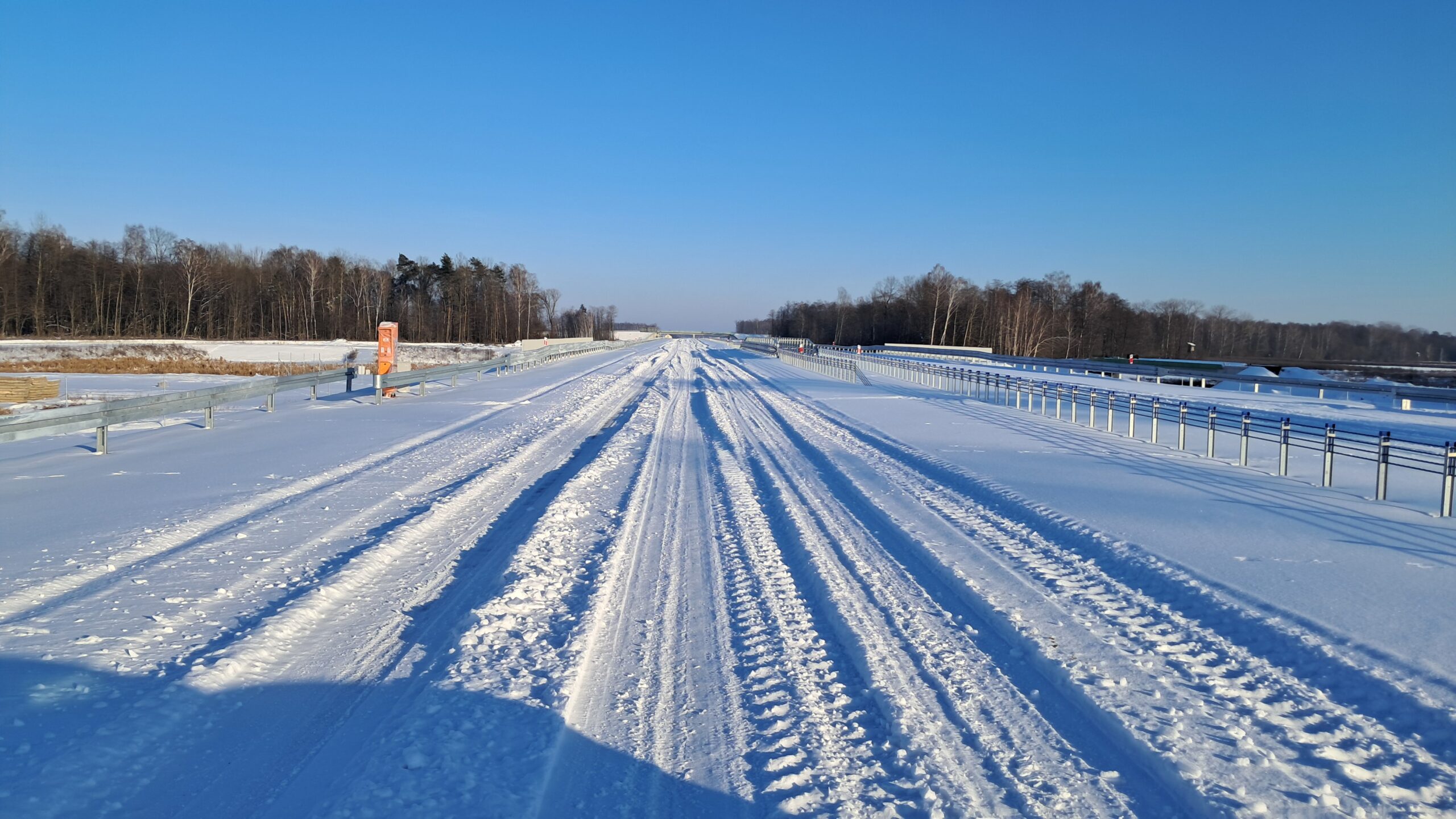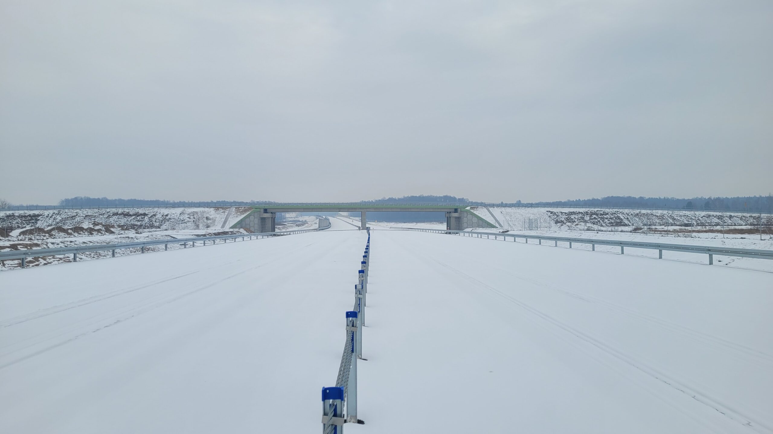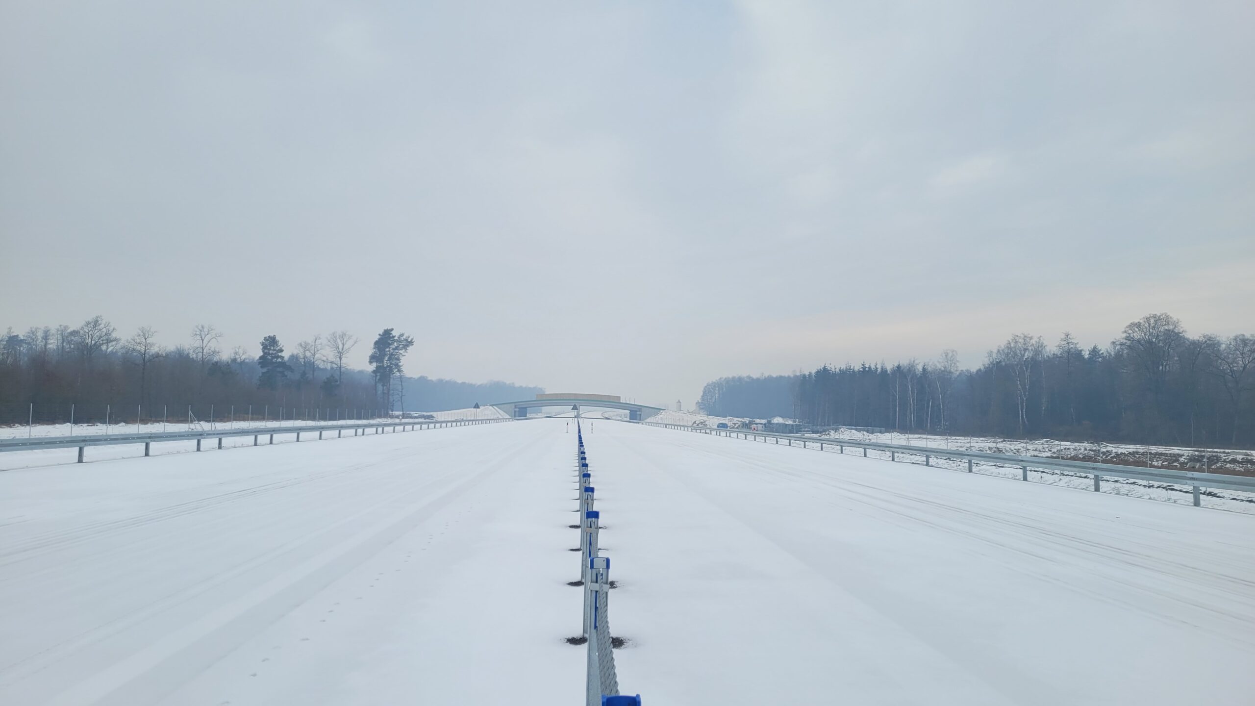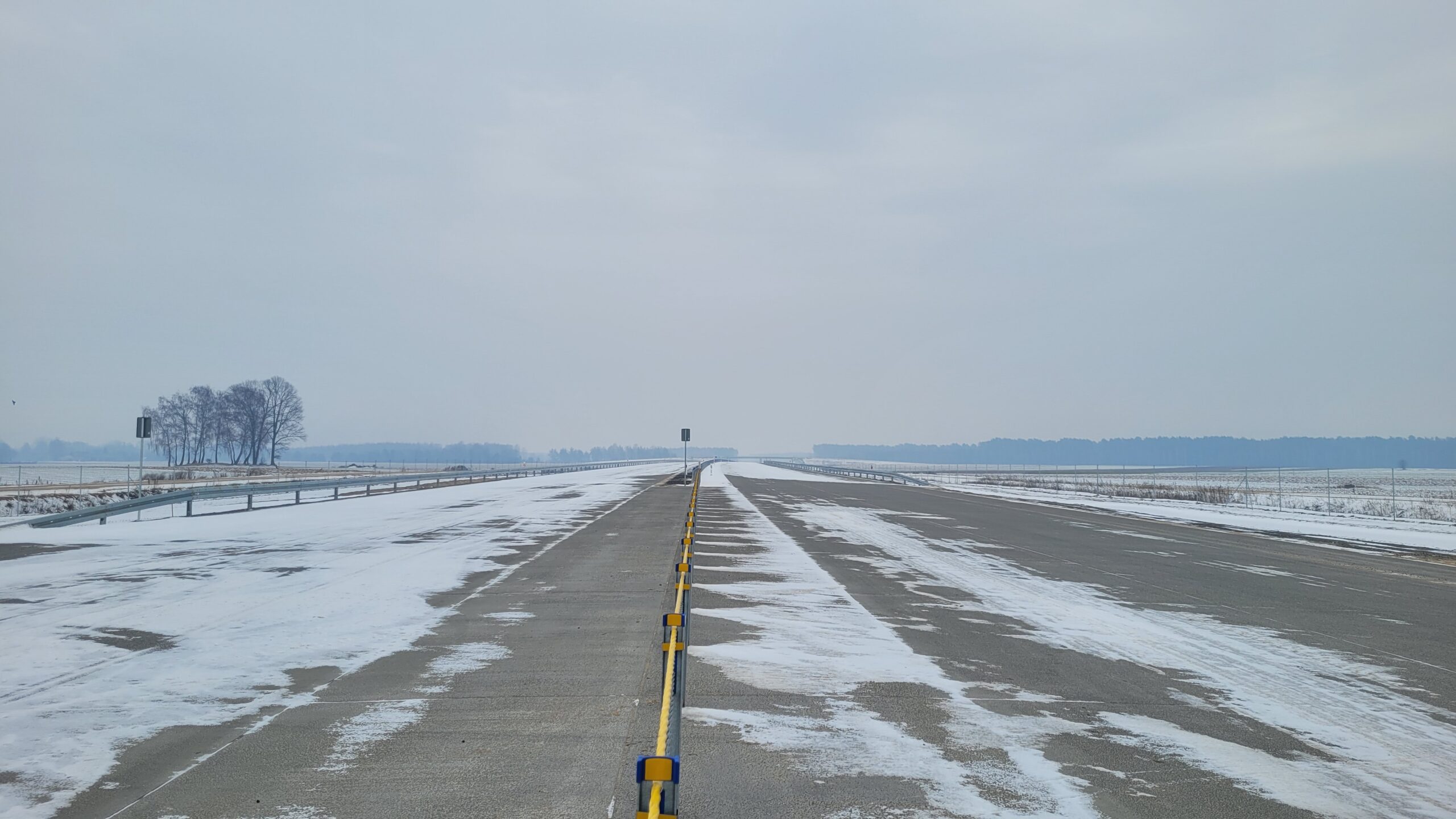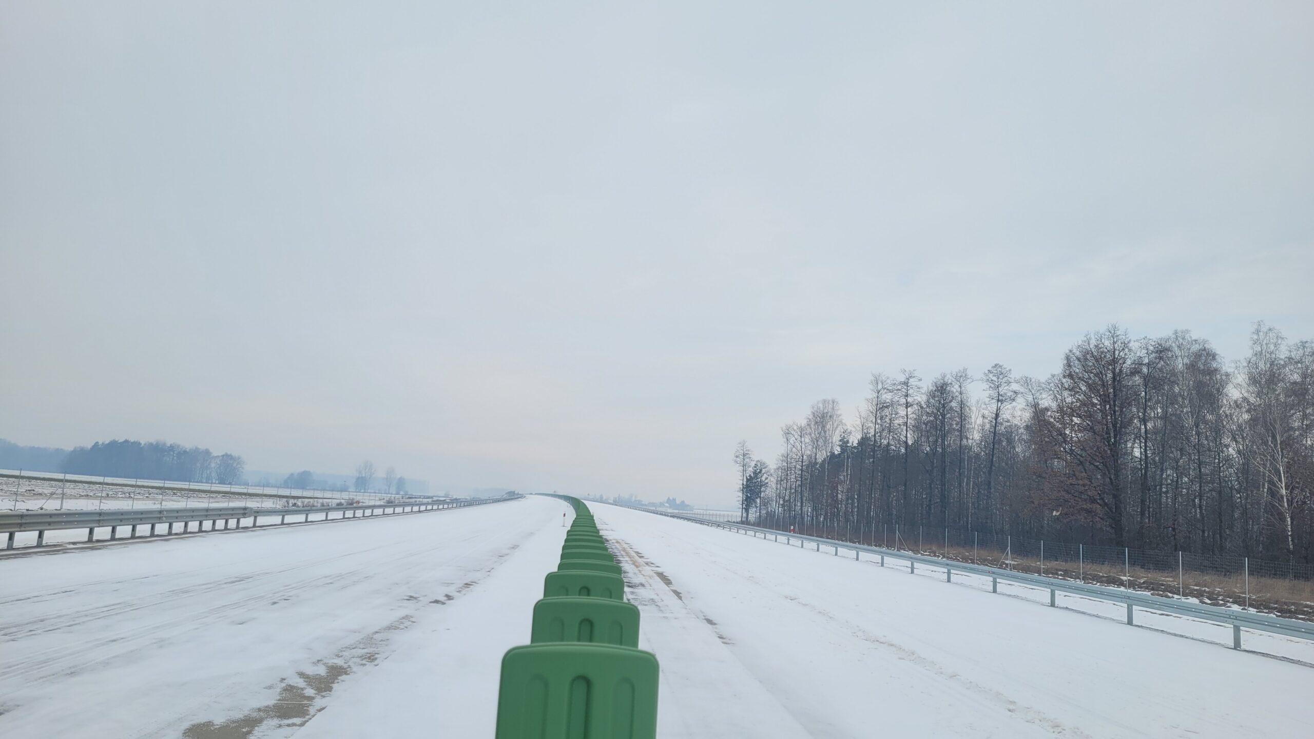 - 07 stycznia km 610+700’ warstwa ścieralna SMA11 budowa poboczy i pasa rozdziału widok w kierunku odcinka IX