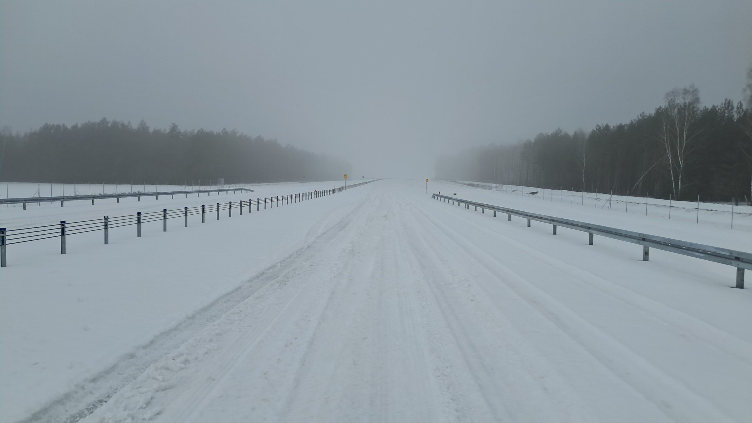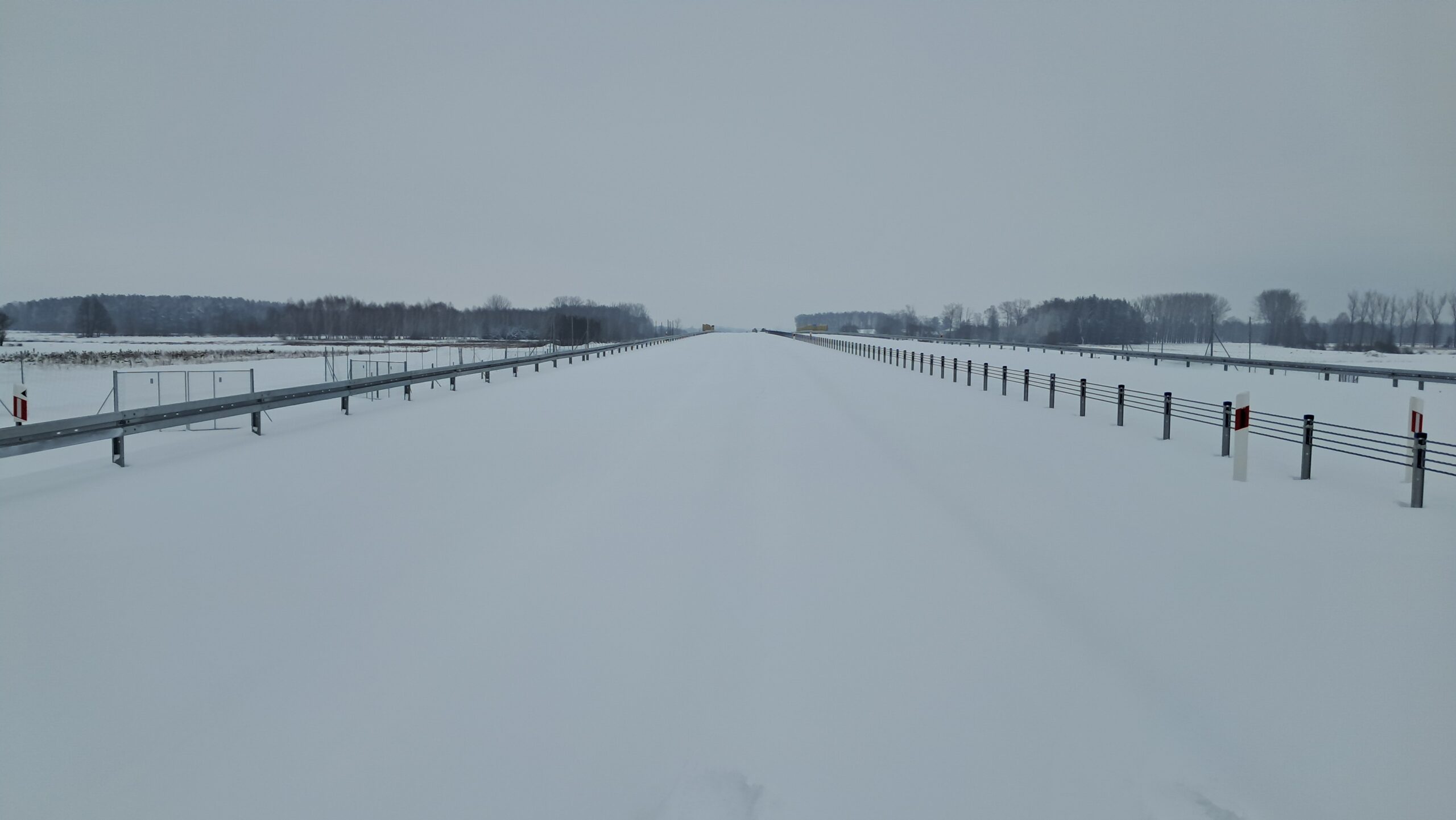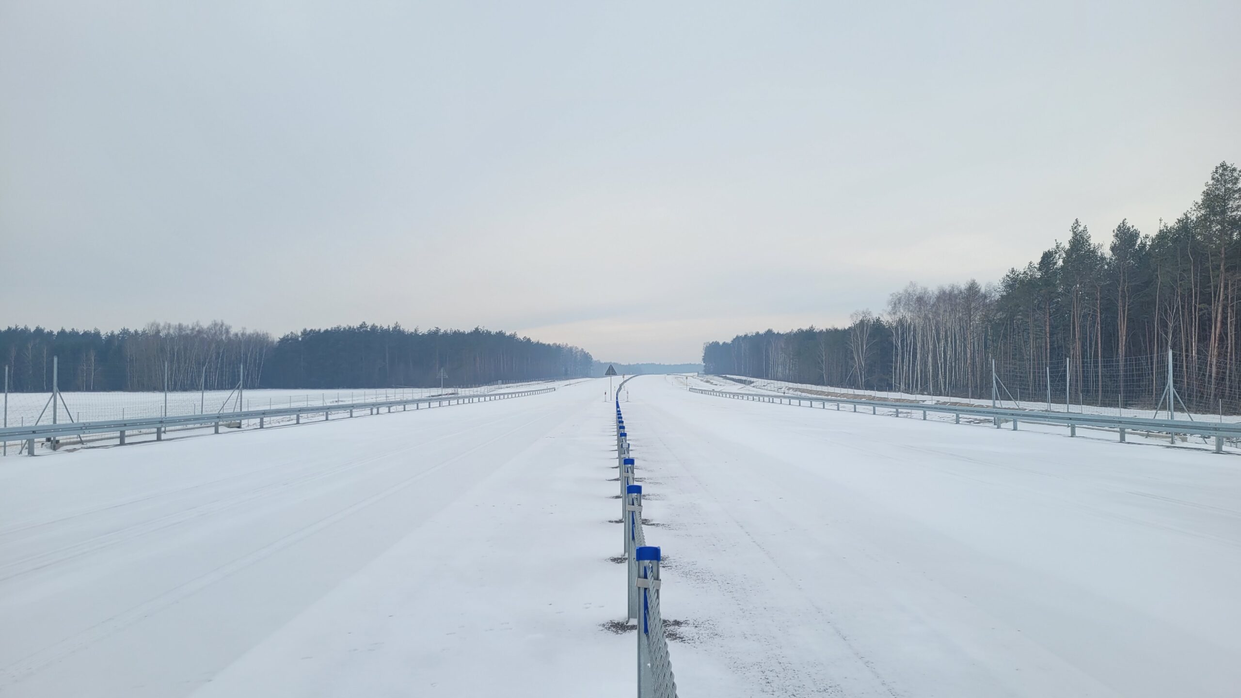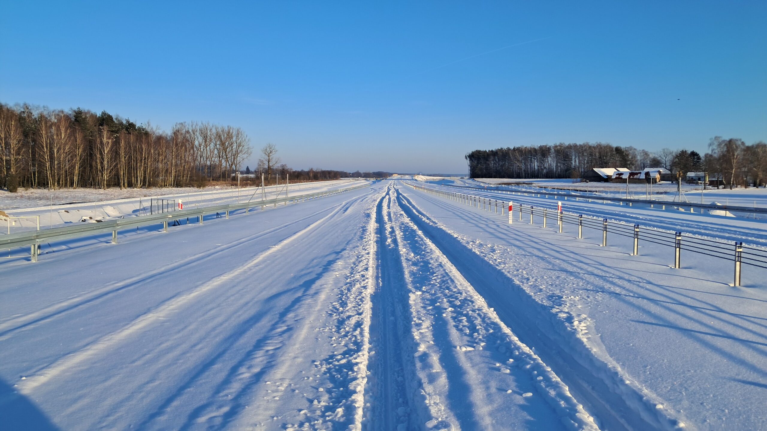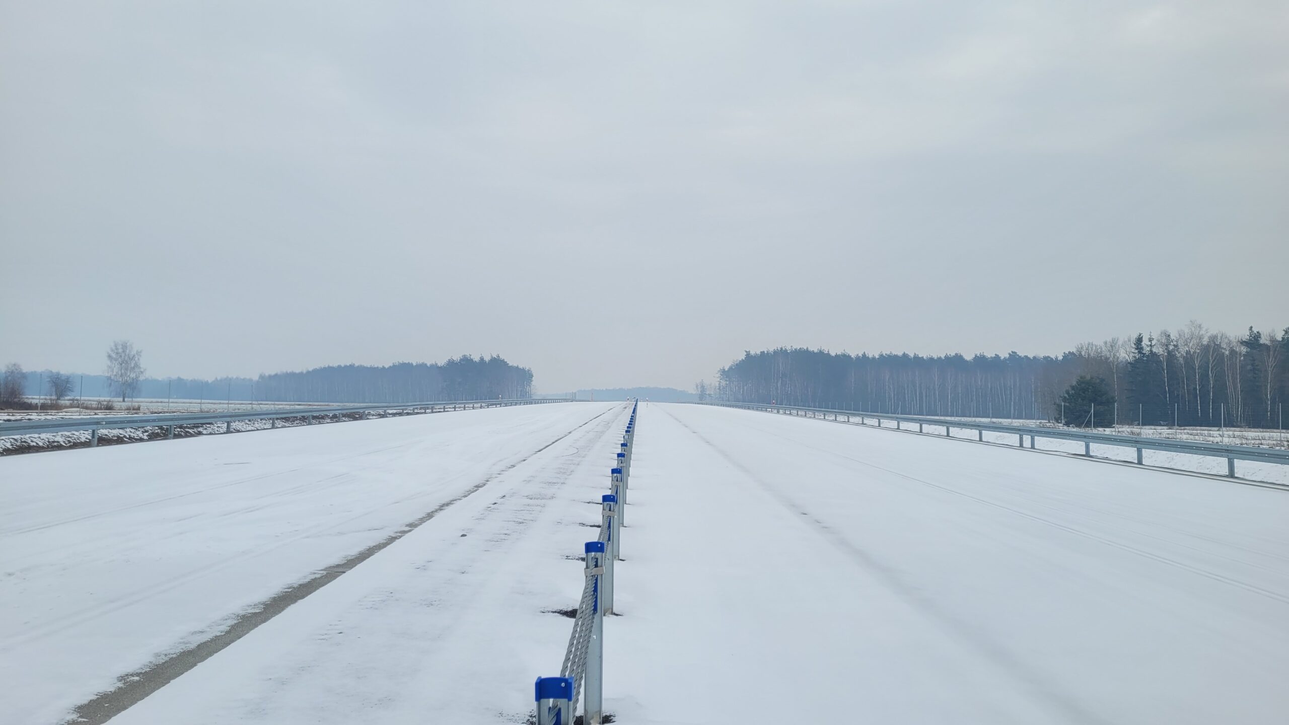 - 07 stycznia km 610+700’ warstwa ścieralna SMA11 budowa poboczy i pasa rozdziału widok w kierunku odcinka IX