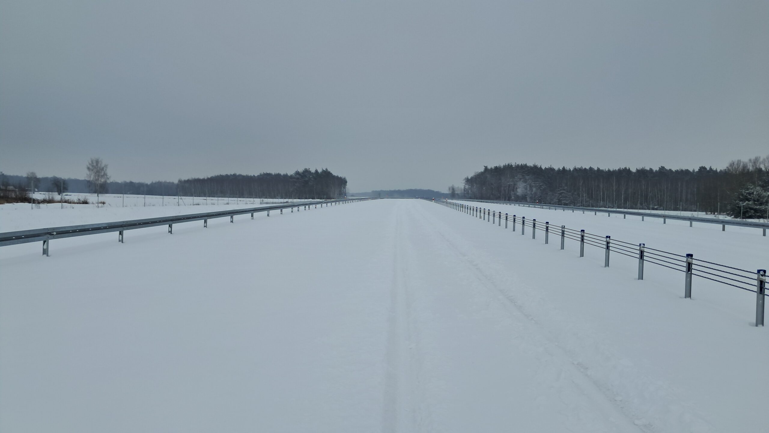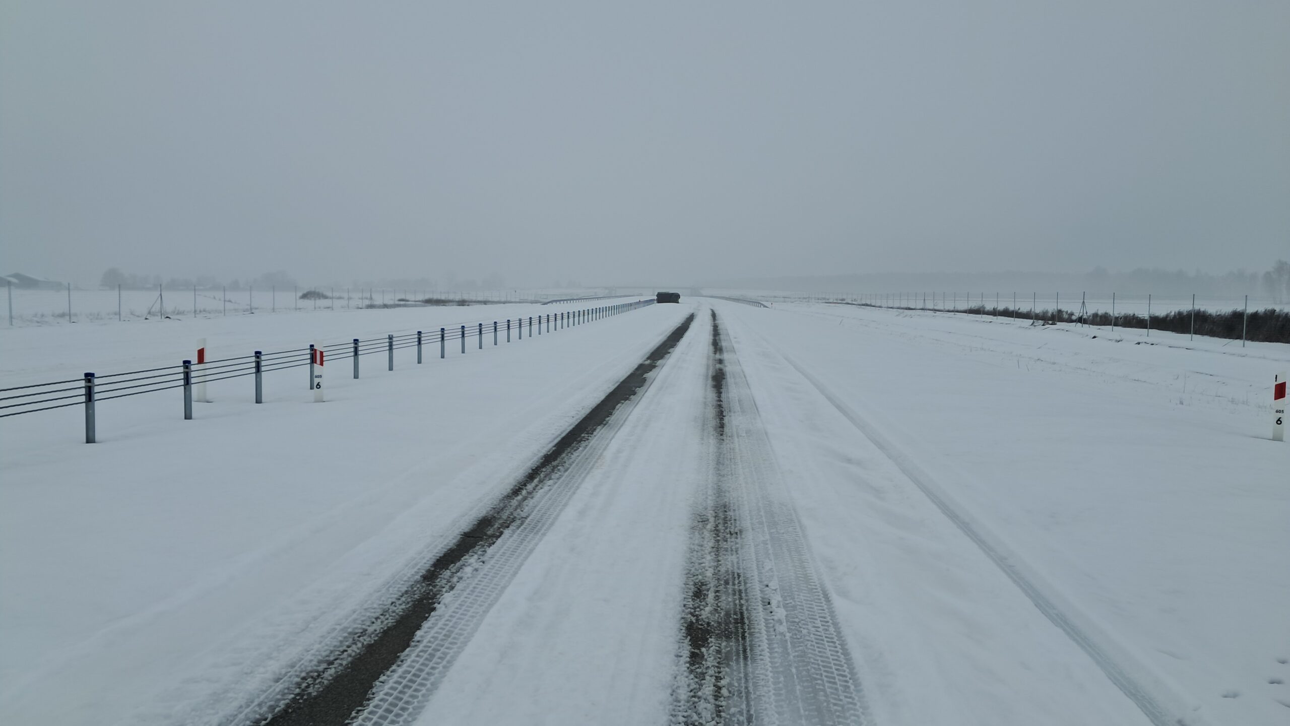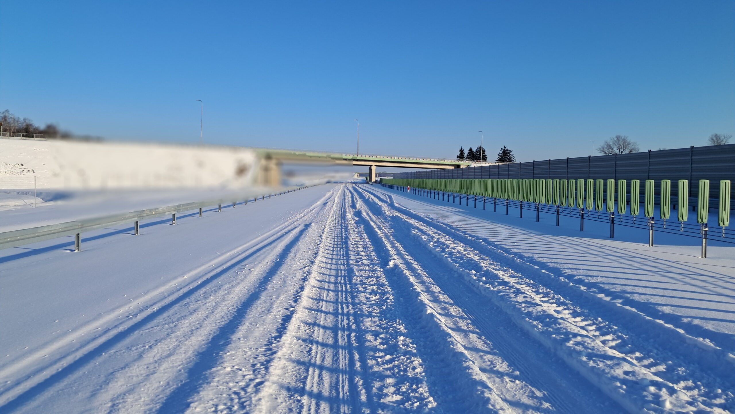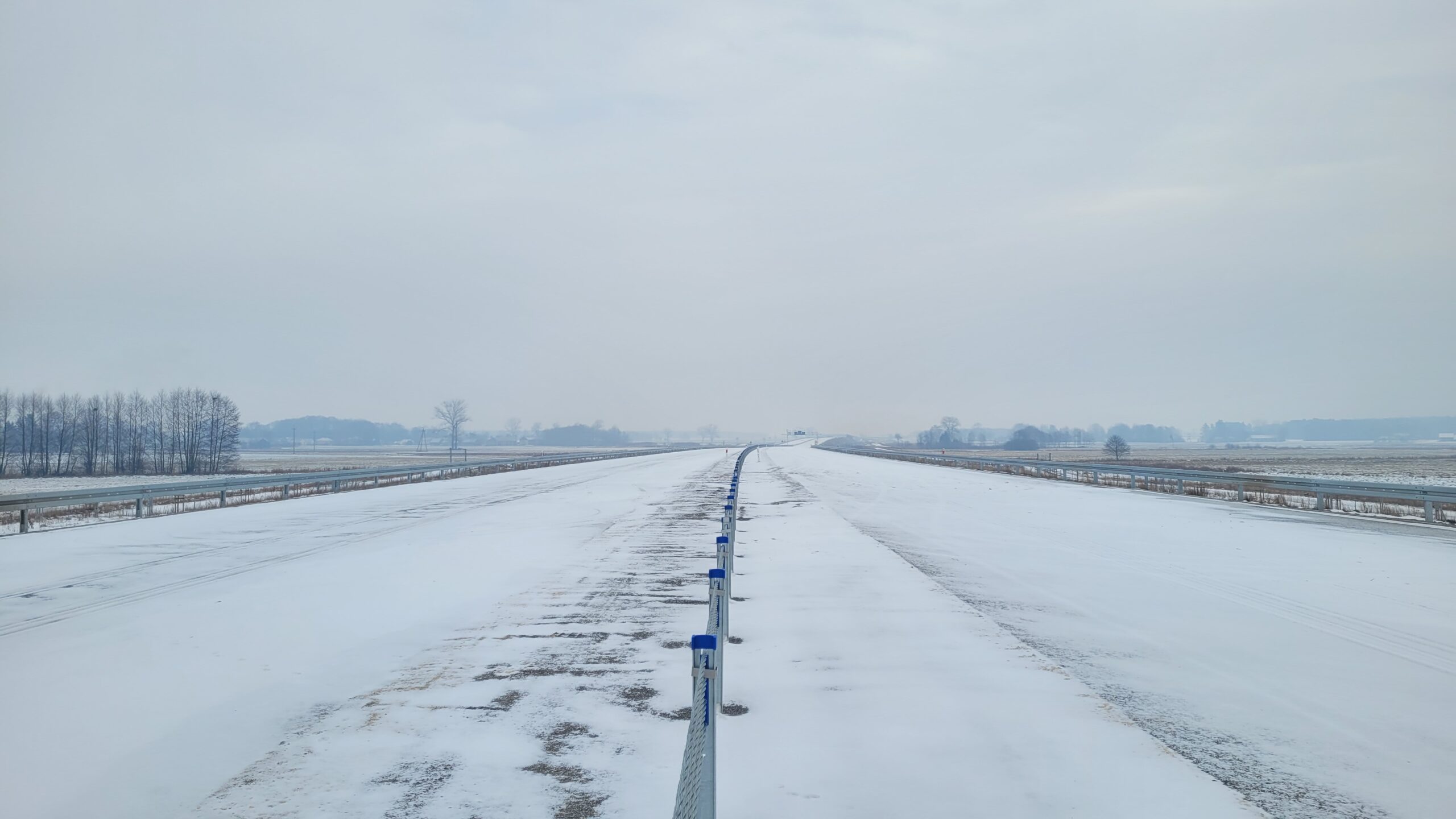 - 07 stycznia km 610+700’ warstwa ścieralna SMA11 budowa poboczy i pasa rozdziału widok w kierunku odcinka IX