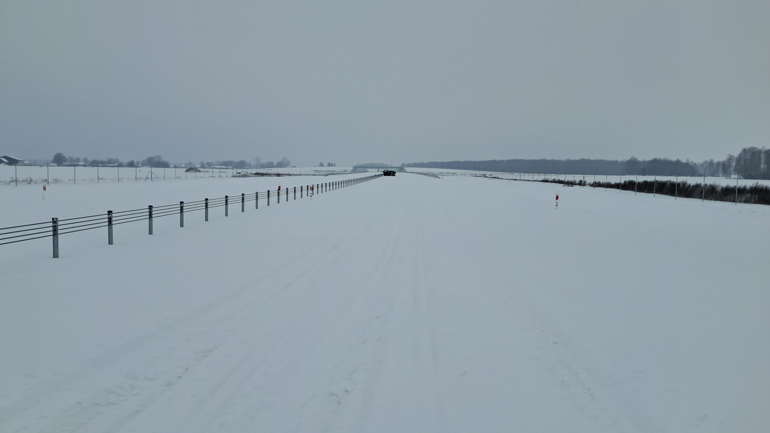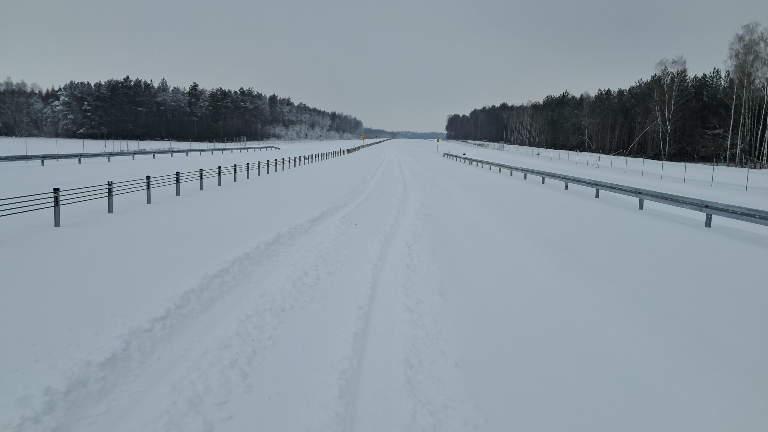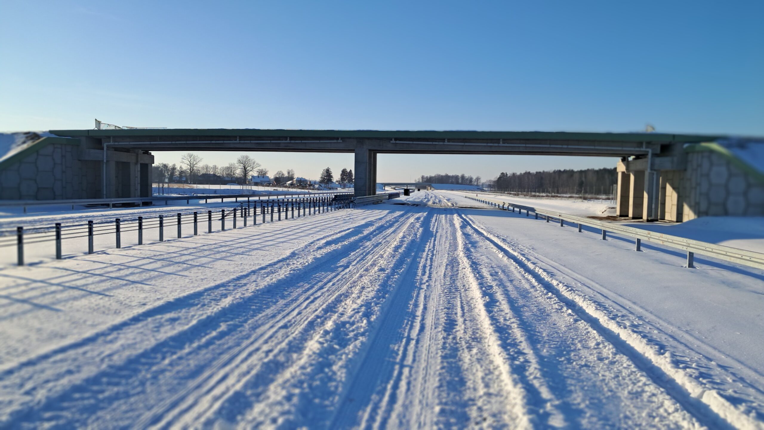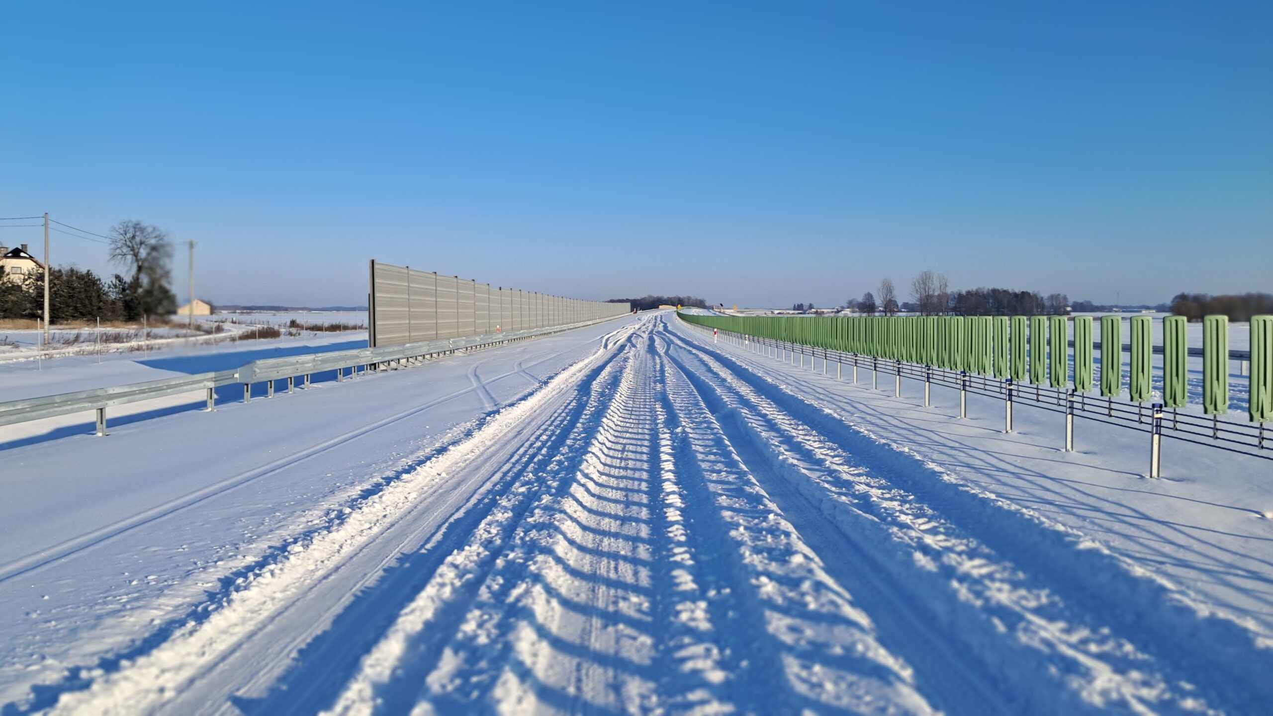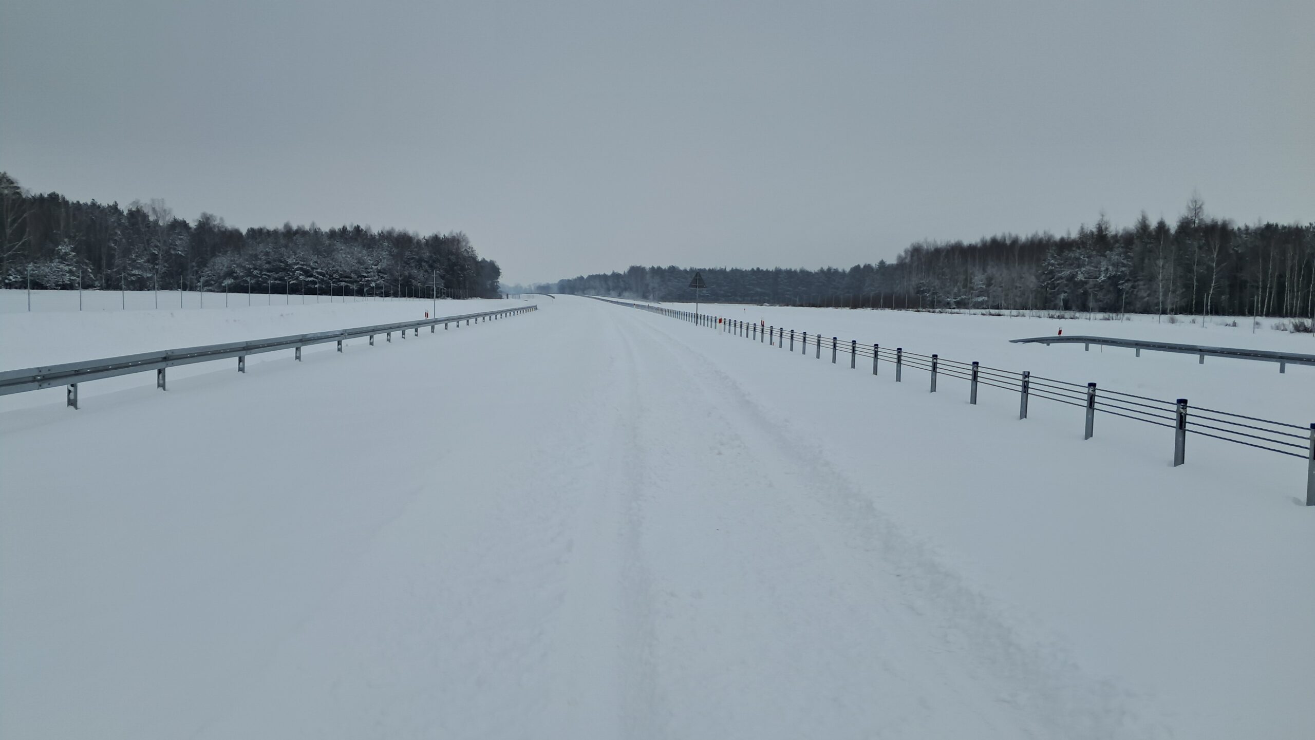 - 07 stycznia km 610+700’ warstwa ścieralna SMA11 budowa poboczy i pasa rozdziału widok w kierunku odcinka IX