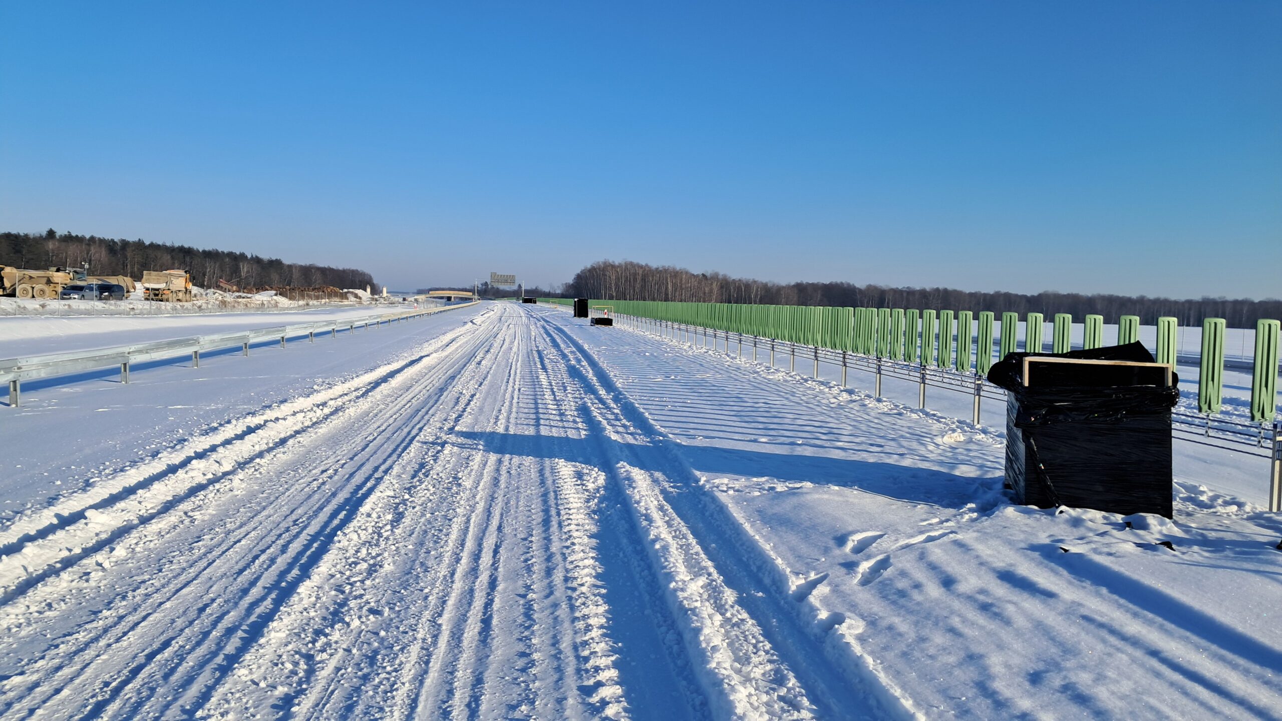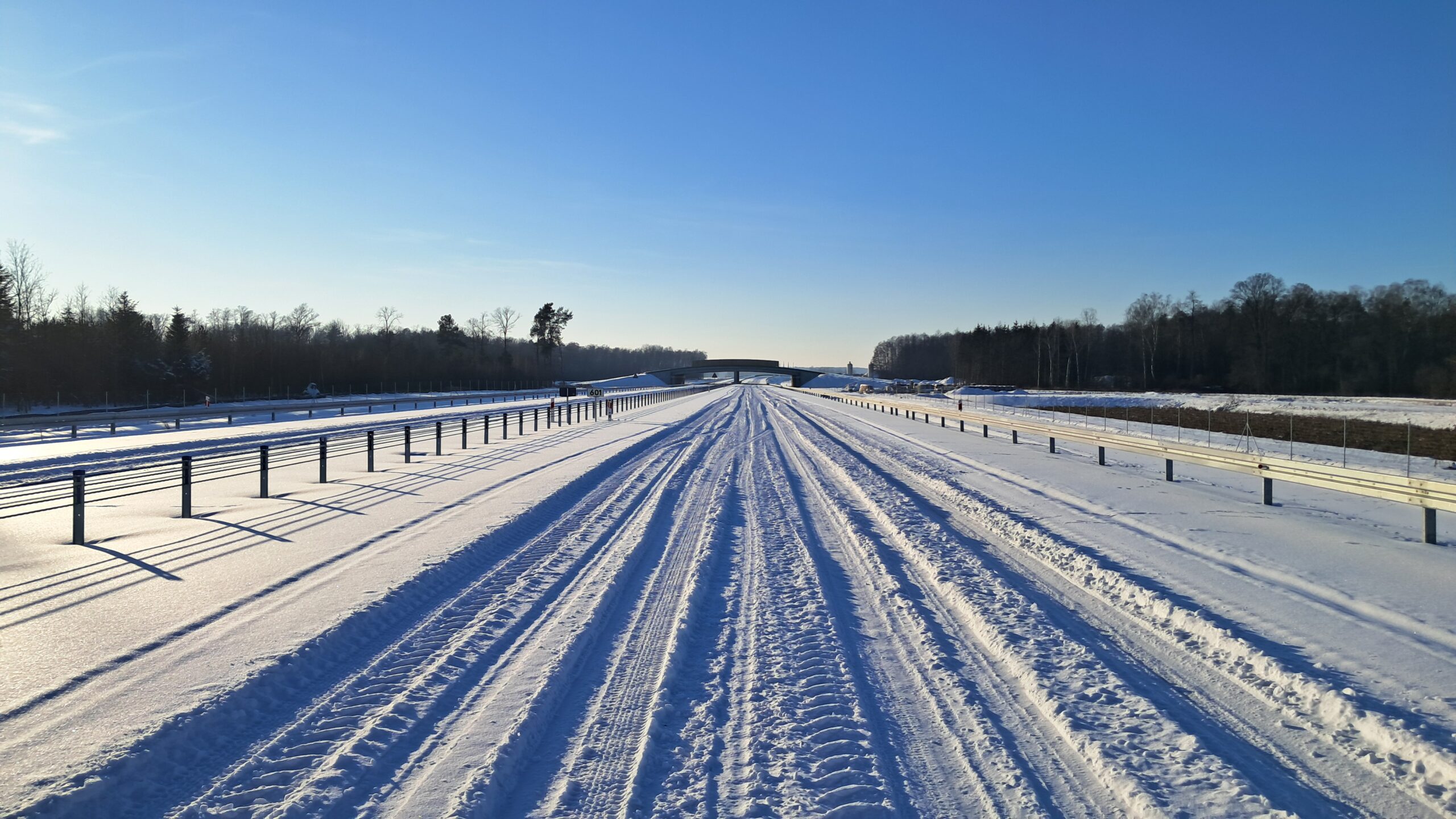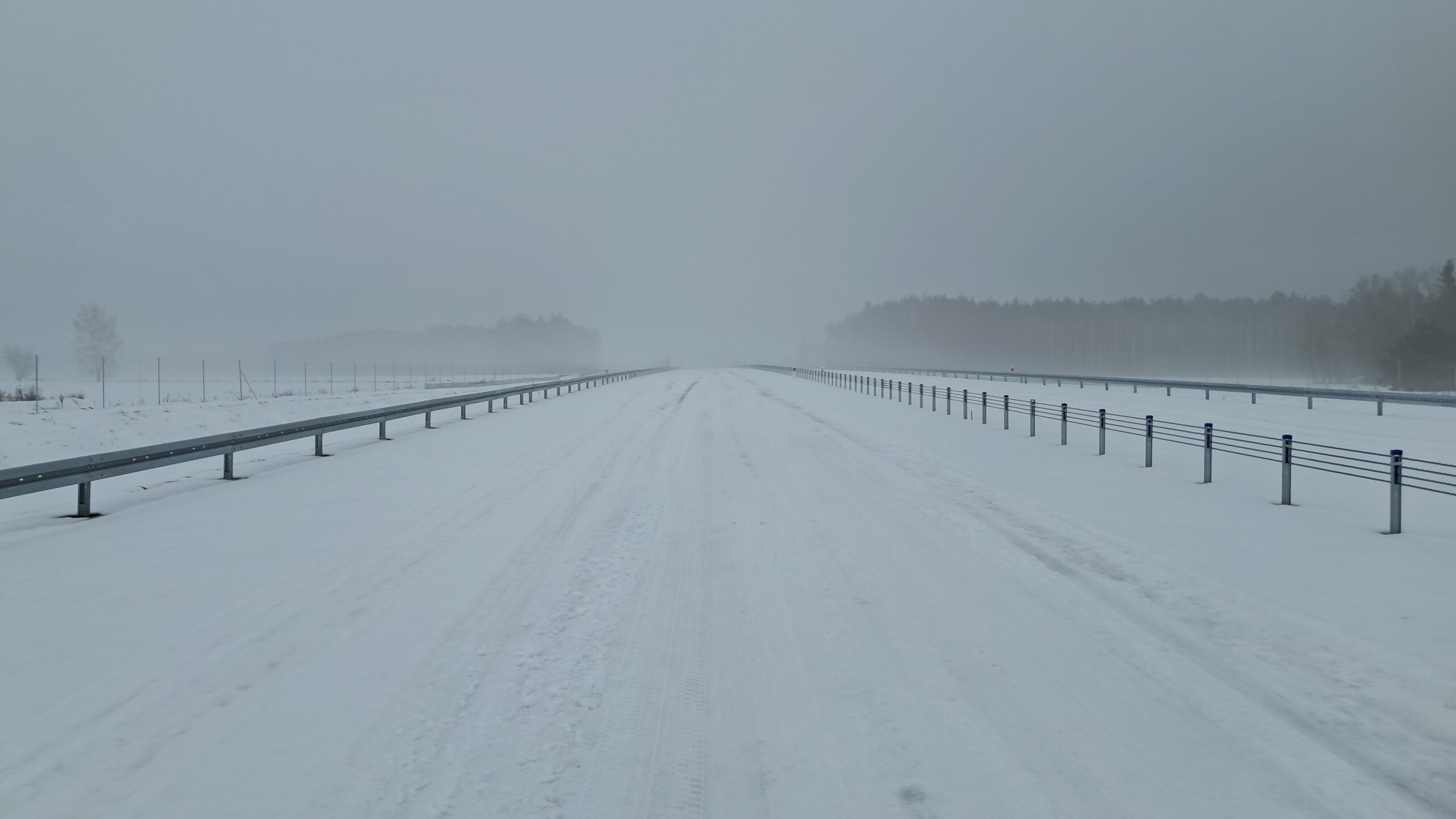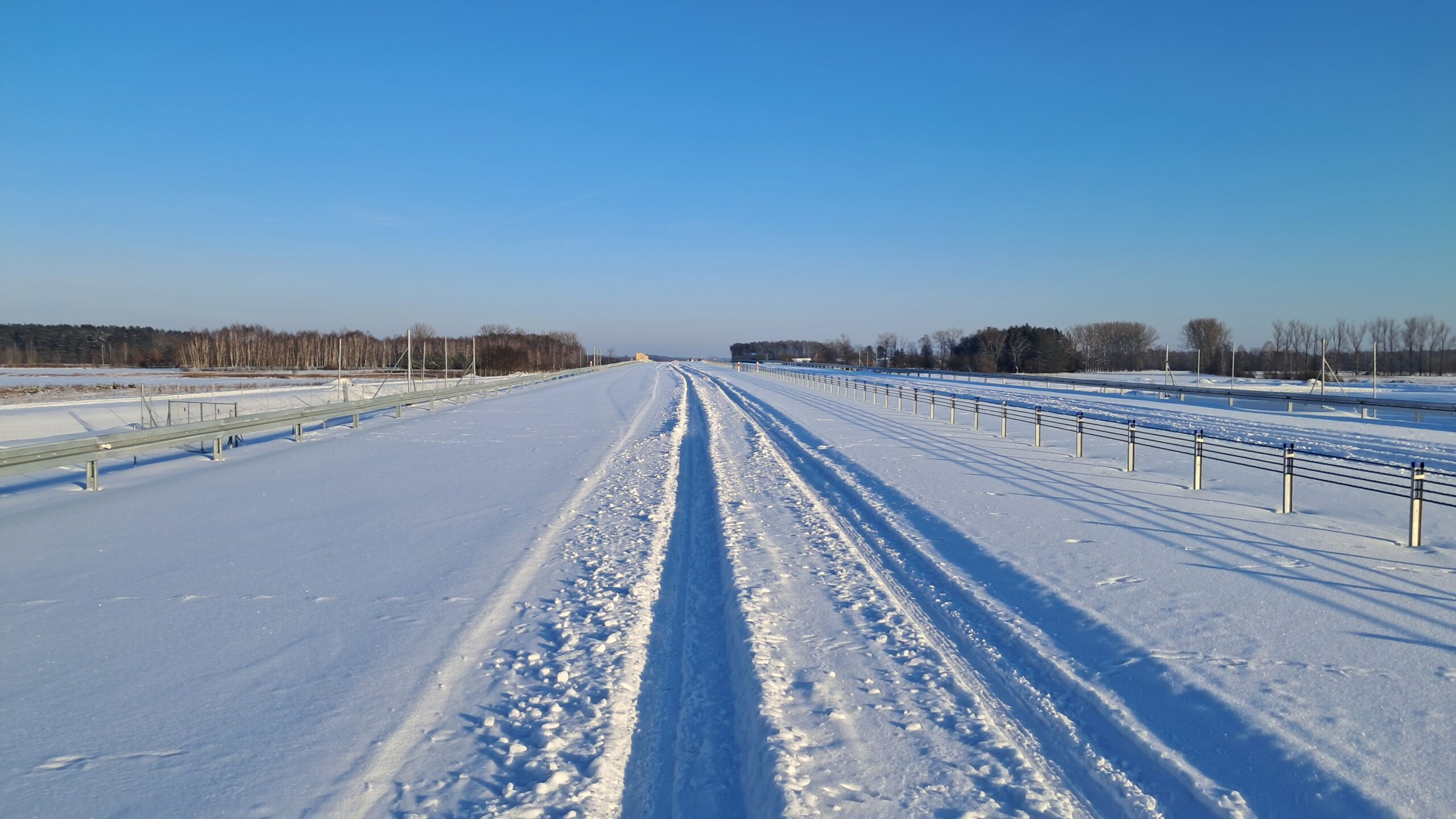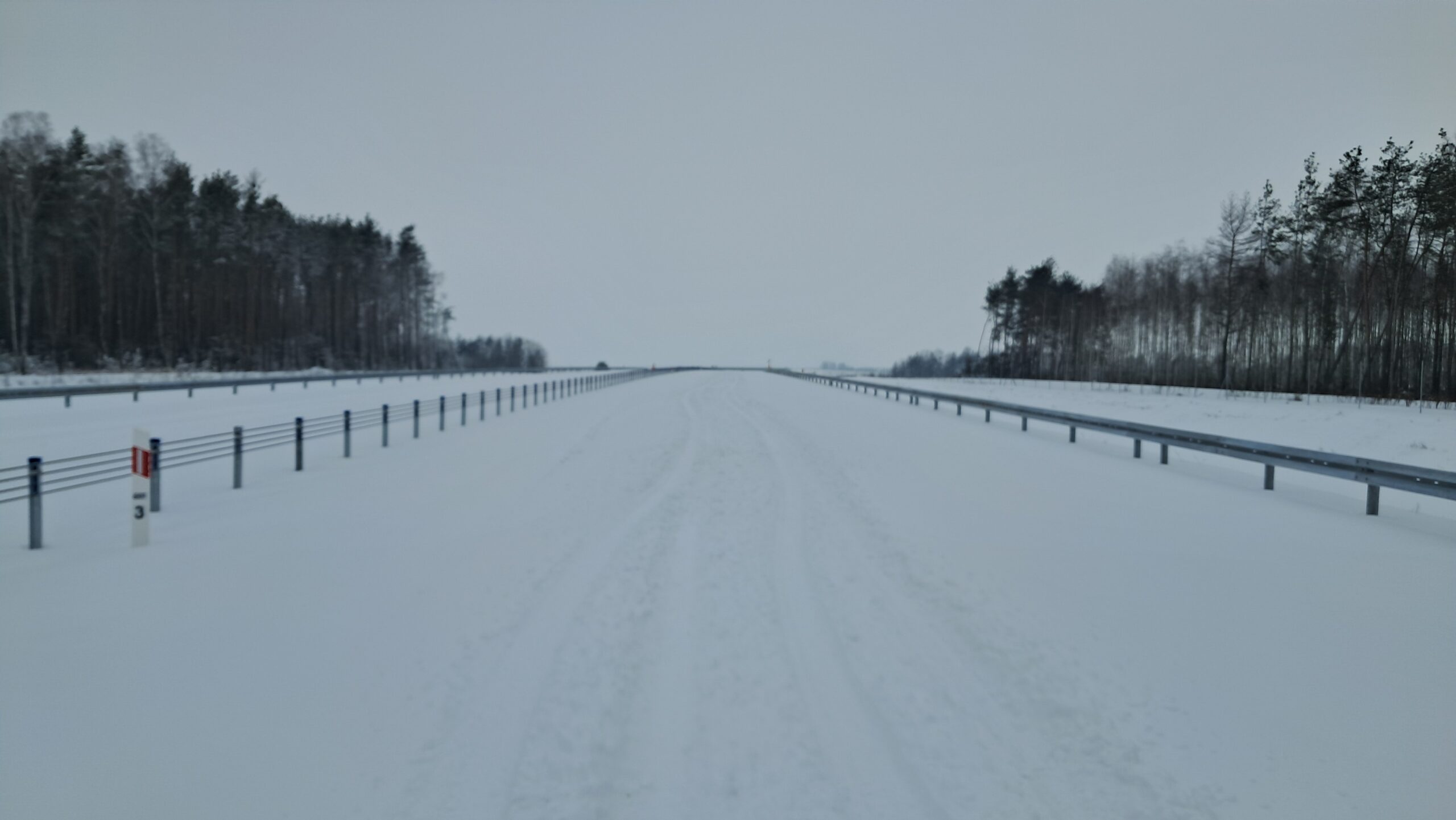 - 07 stycznia km 610+700’ warstwa ścieralna SMA11 budowa poboczy i pasa rozdziału widok w kierunku odcinka IX