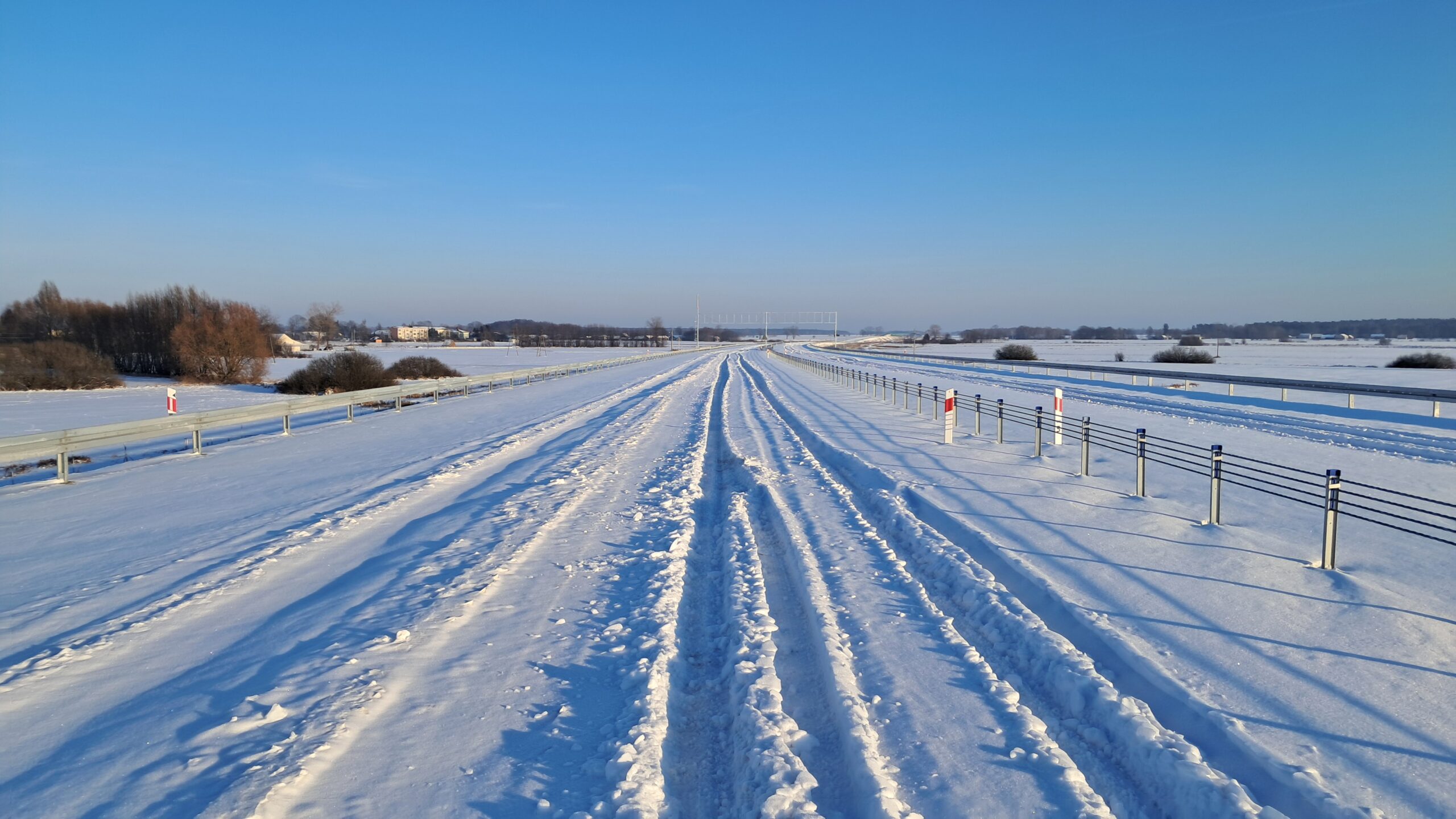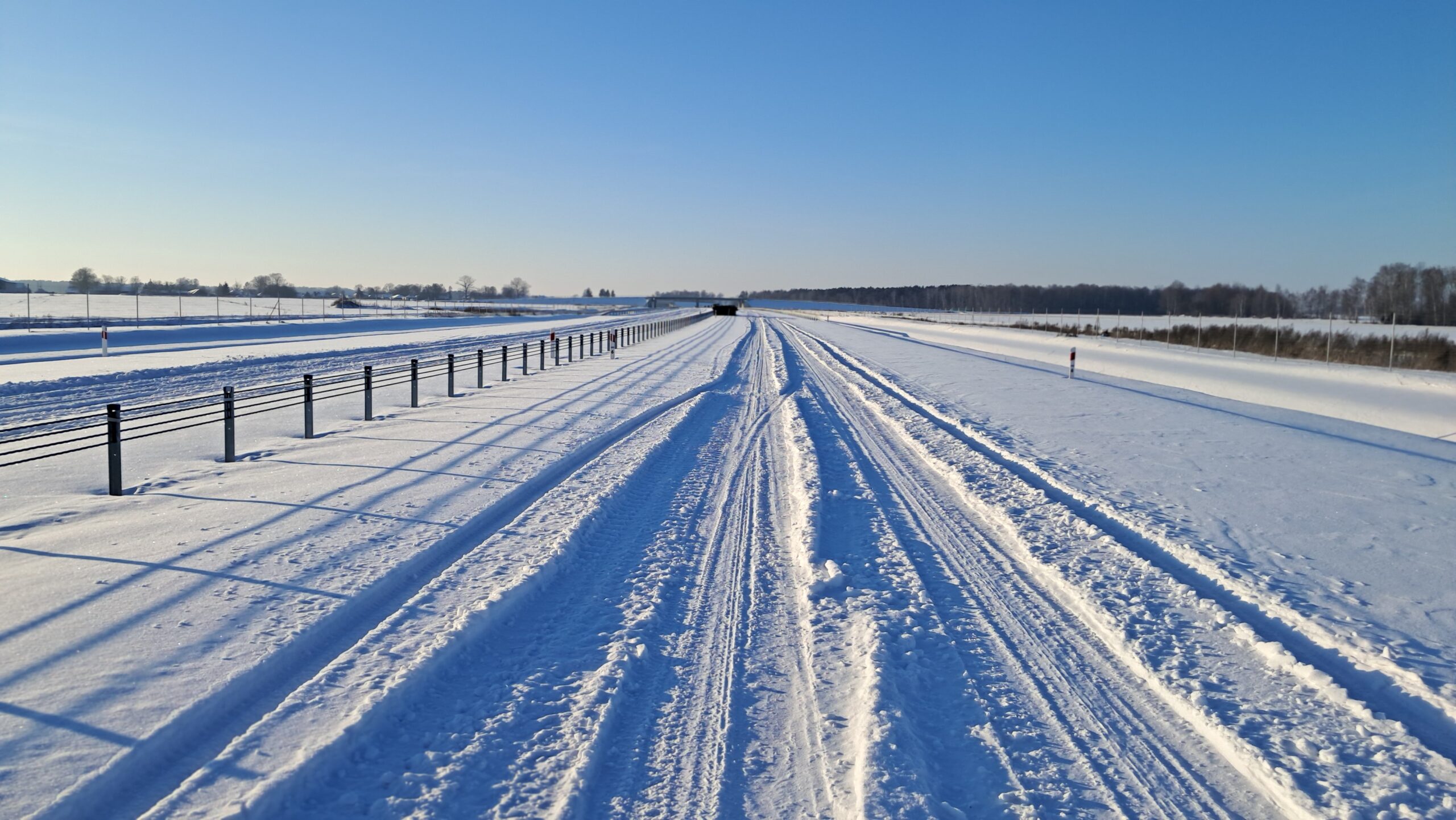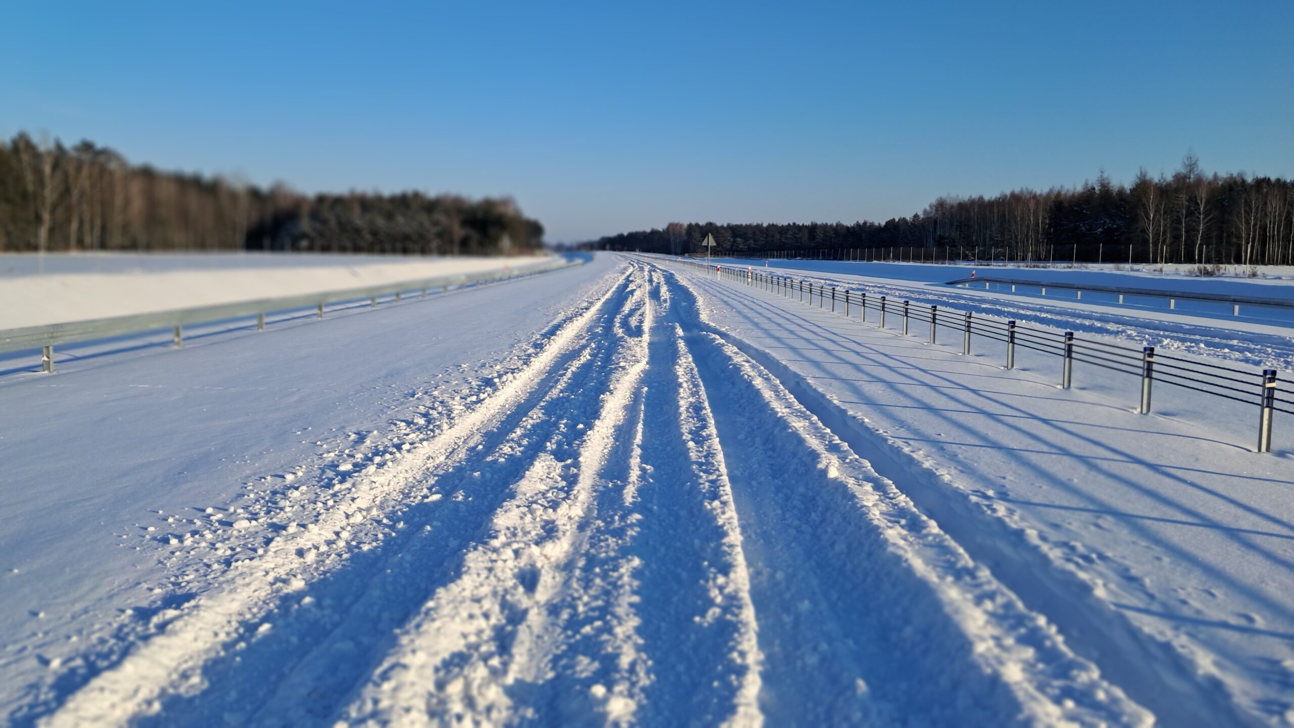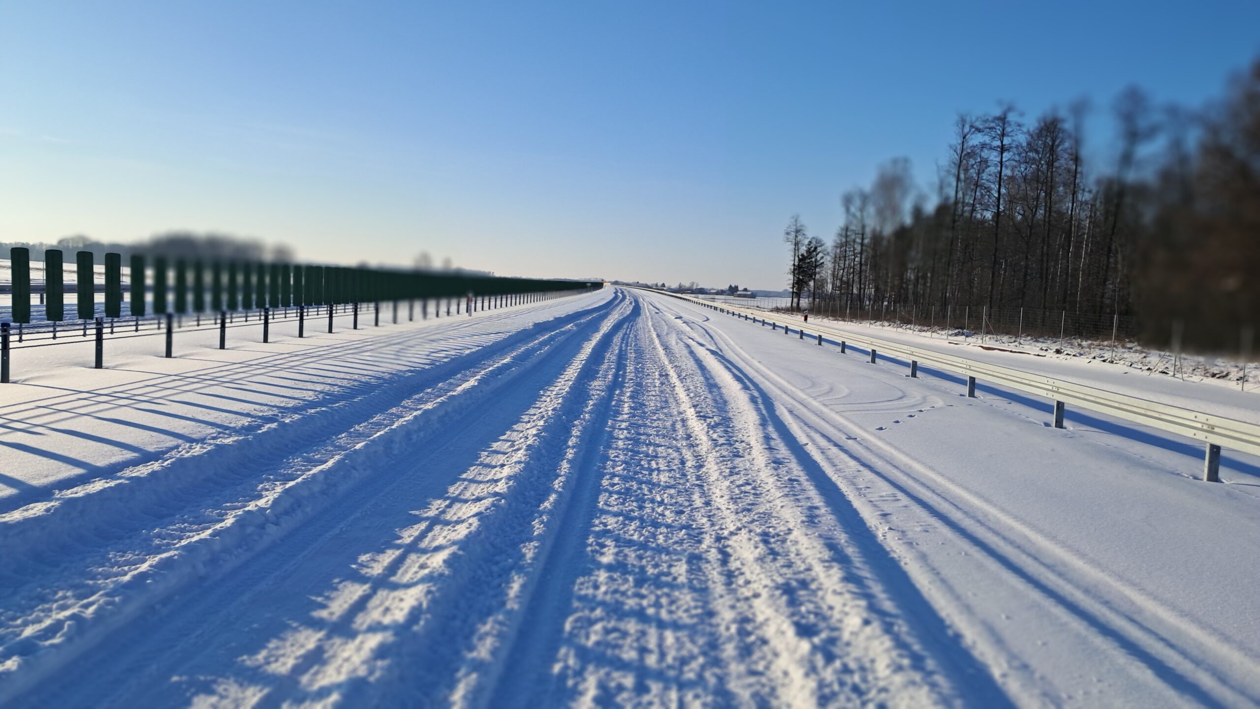 - 07 stycznia km 610+700’ warstwa ścieralna SMA11 budowa poboczy i pasa rozdziału widok w kierunku odcinka IX