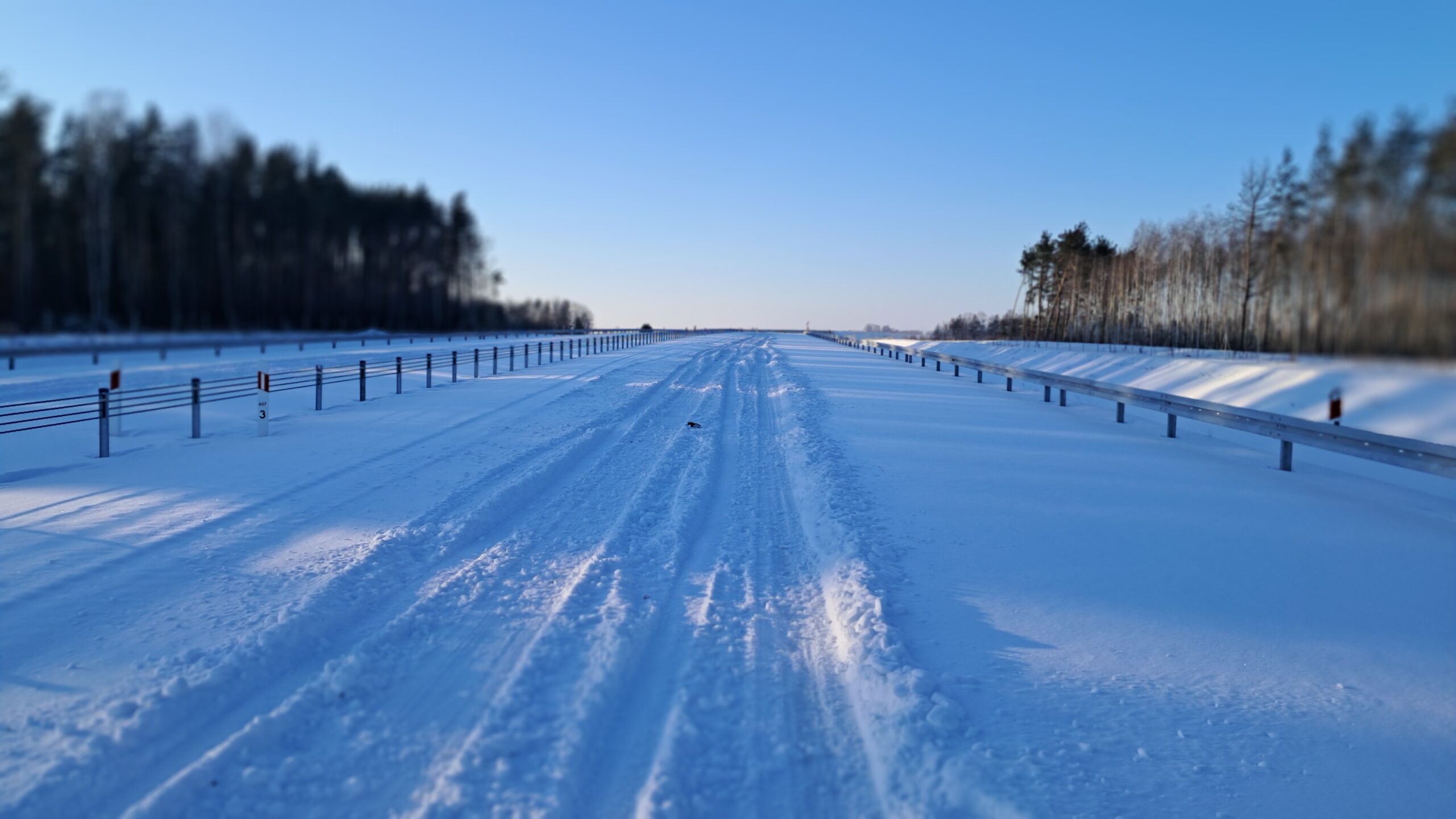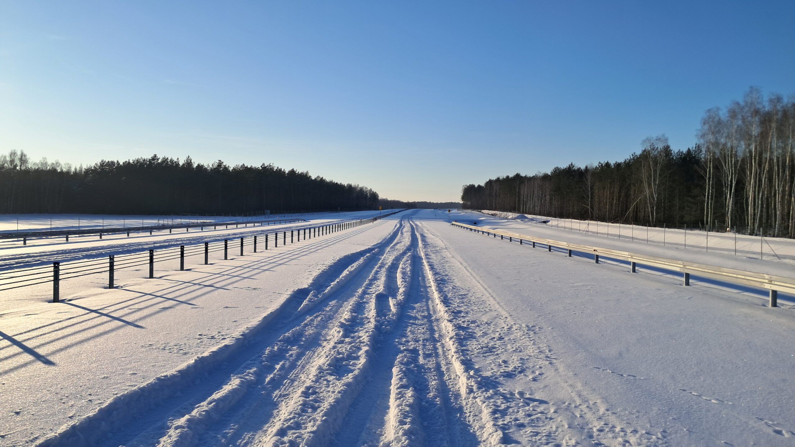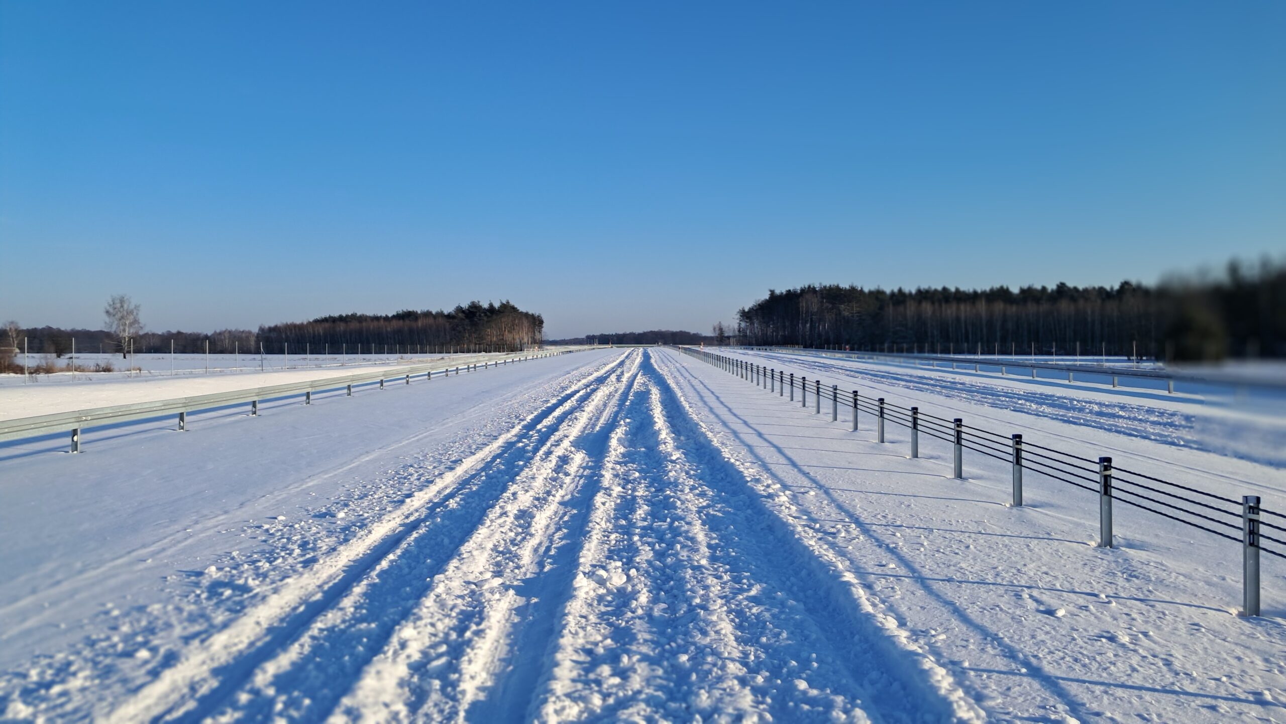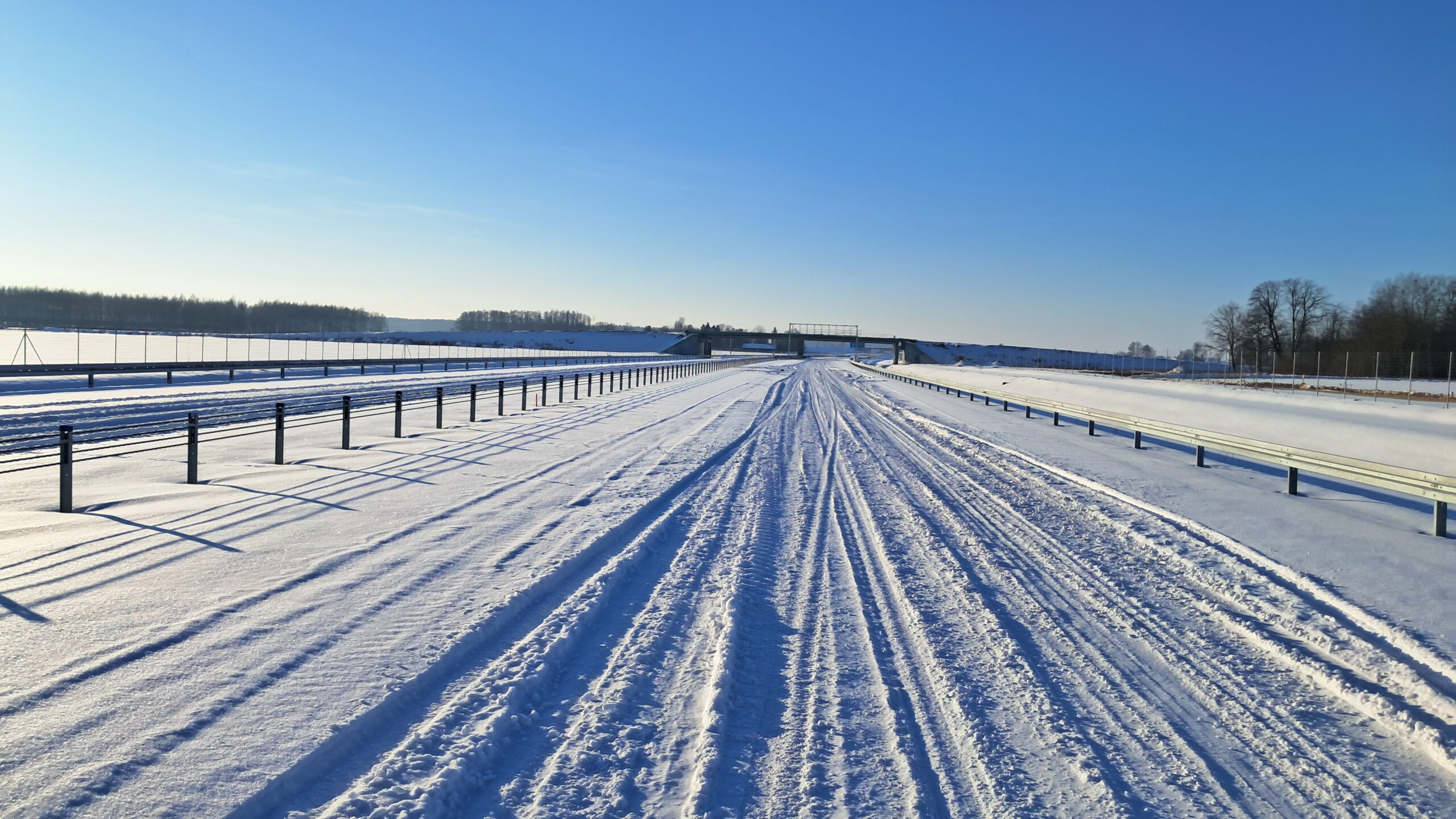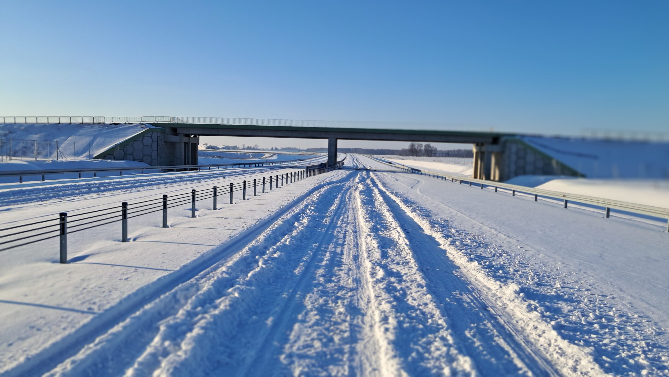 - 07 stycznia km 610+700’ warstwa ścieralna SMA11 budowa poboczy i pasa rozdziału widok w kierunku odcinka IX