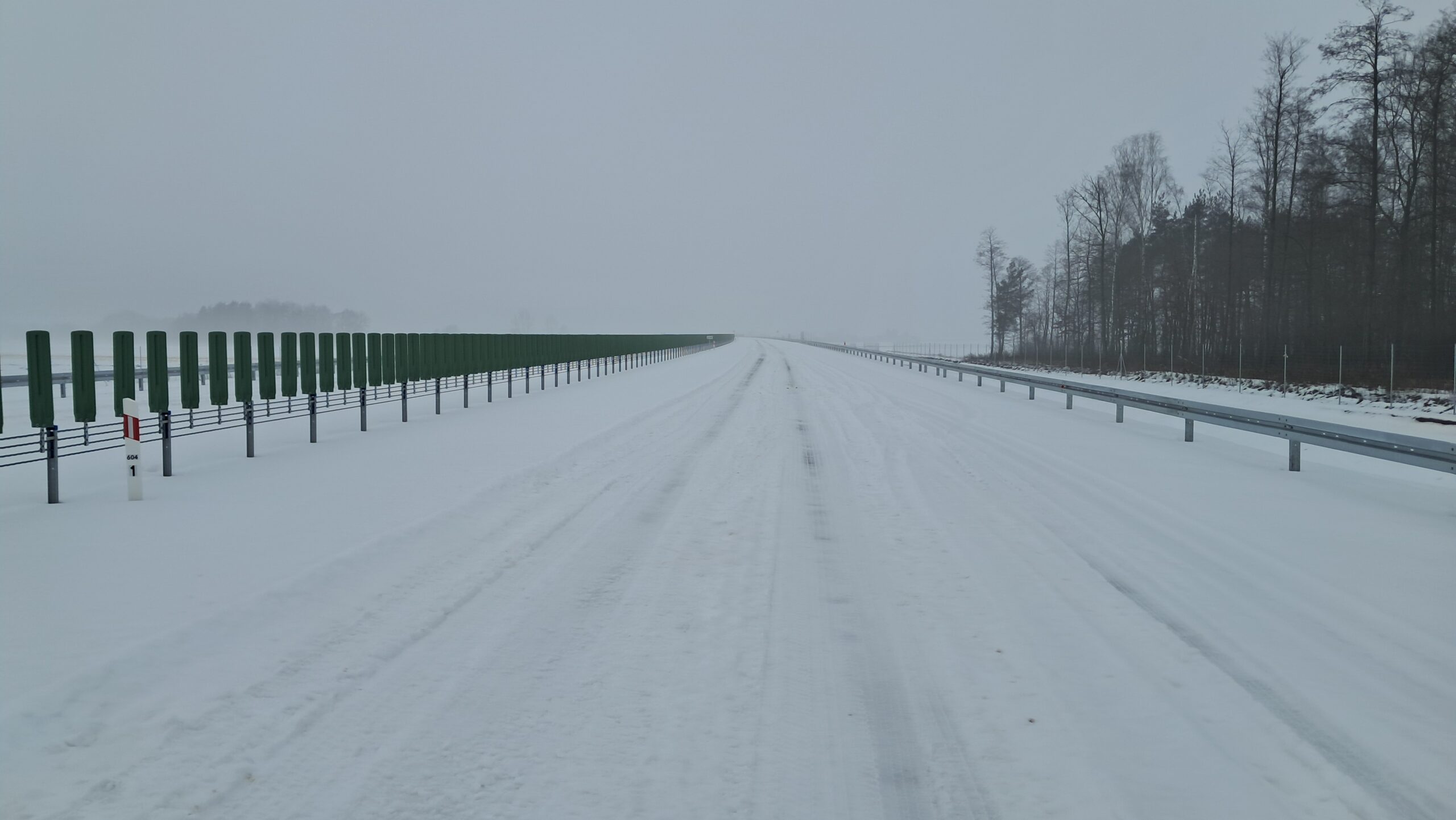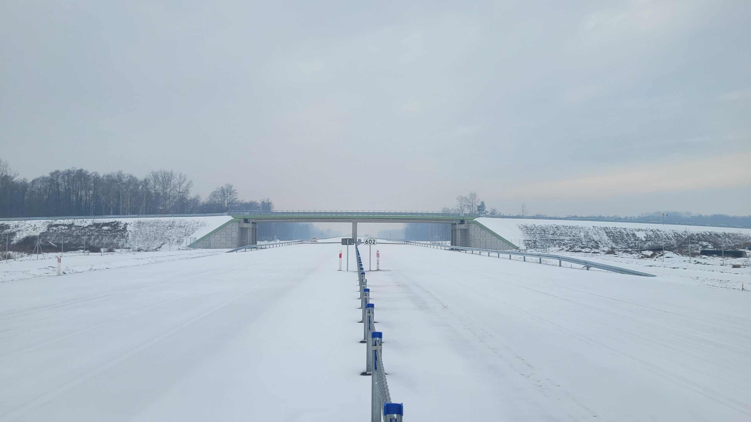 - 07 stycznia km 603+600 nawierzchnia C35_45 i WD_70 powierzchniowe utrwalenie pasa rozdziału montaż barier linowych