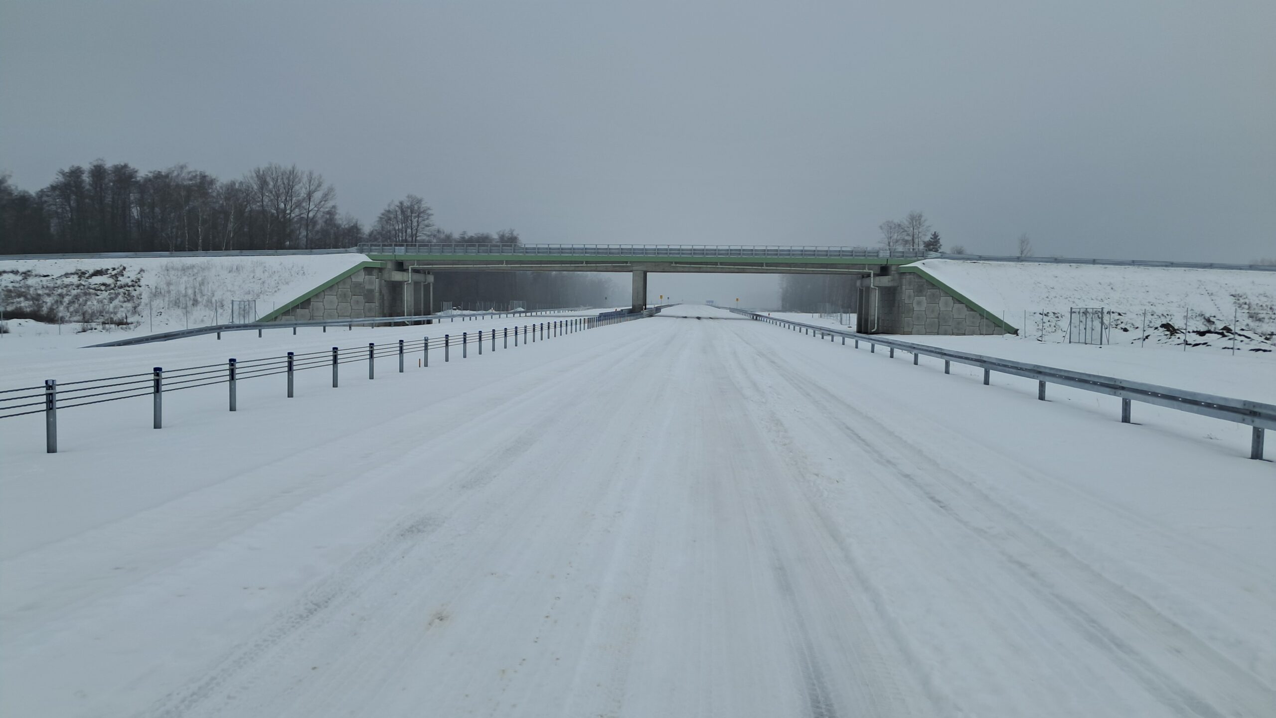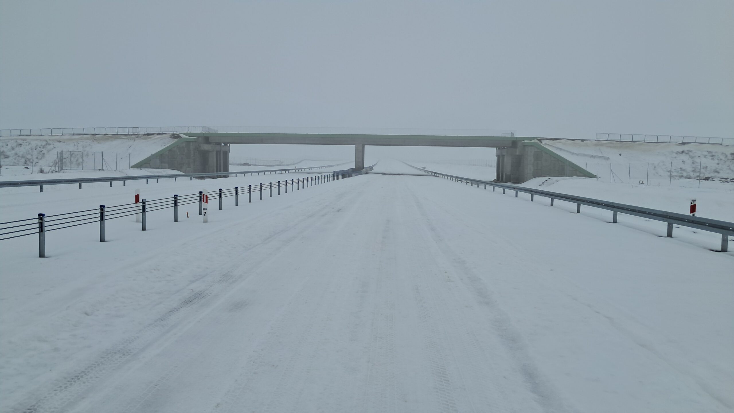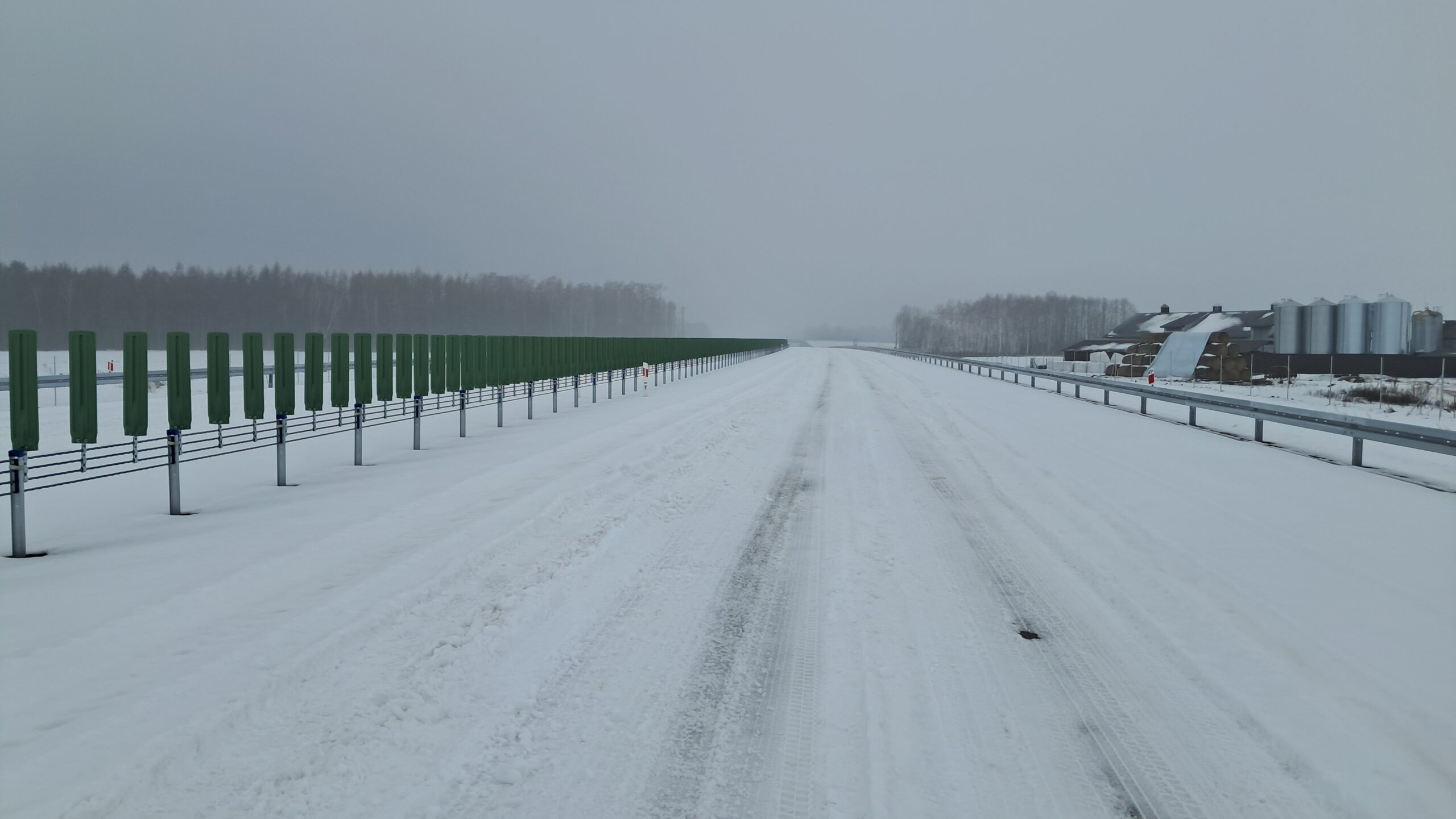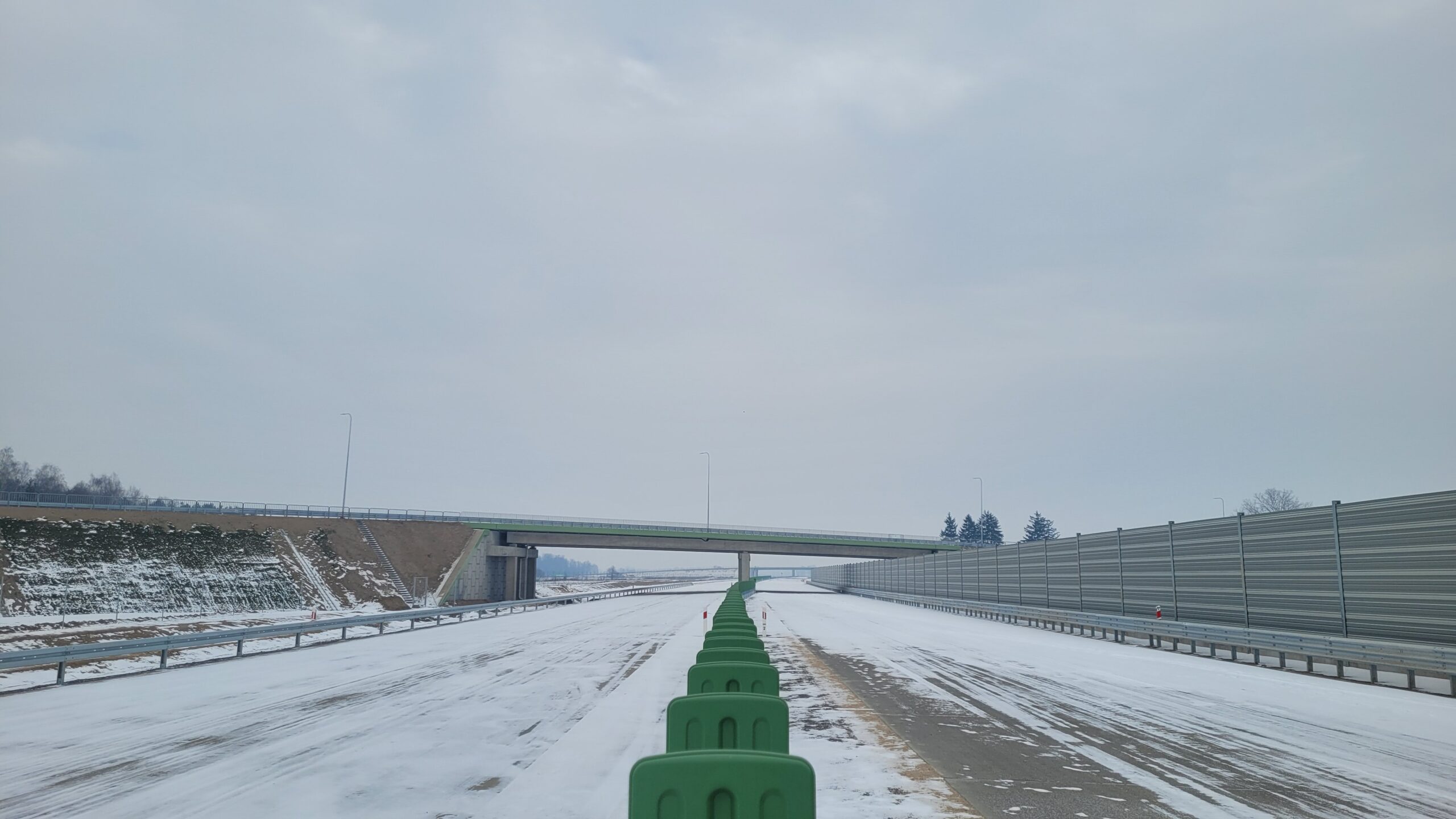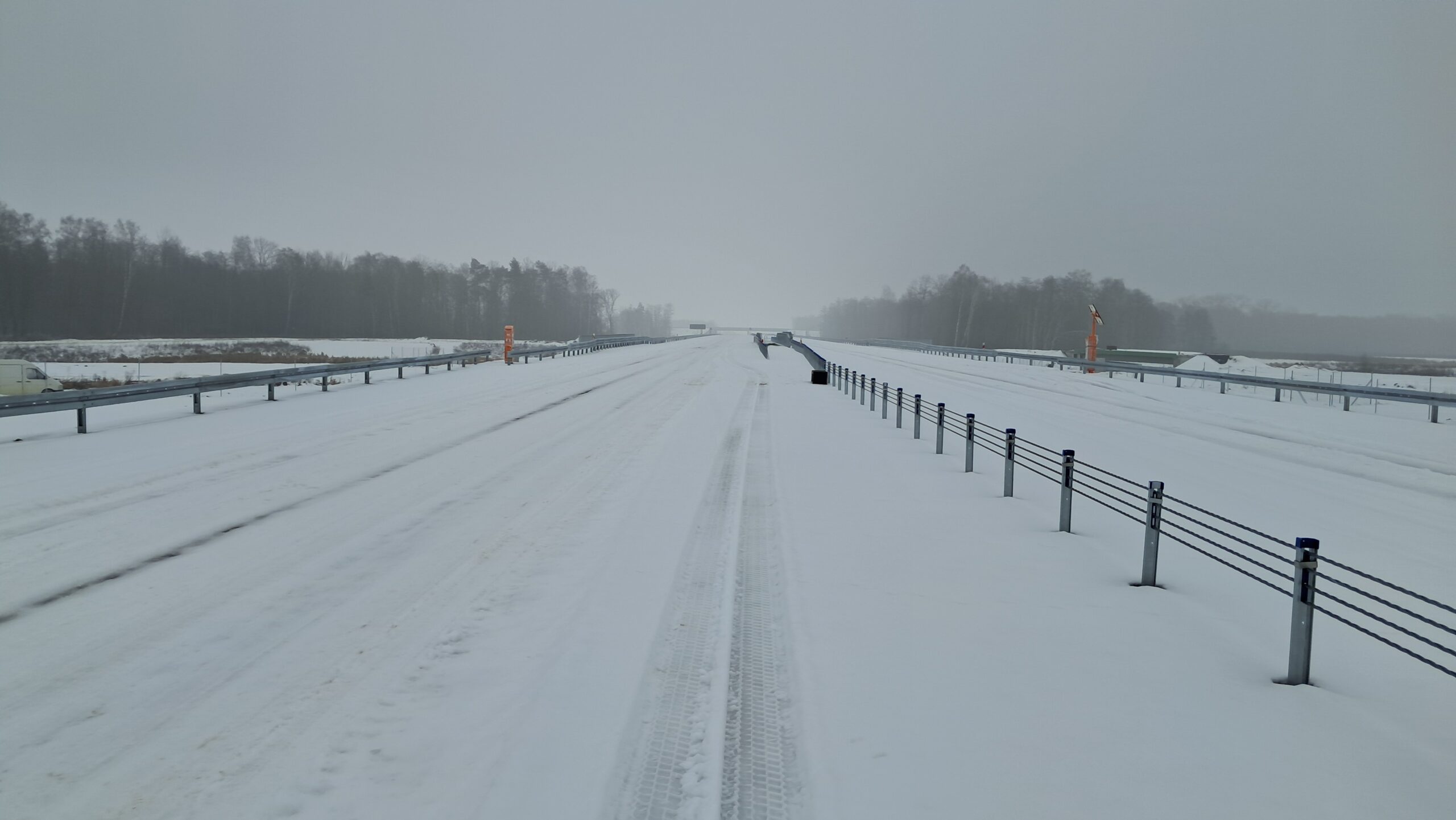 - 07 stycznia km 599+700 nawierzchnia betonowa C35_45 montaż barier linowych częściowe oznakowanie poziome jezdnia prawa